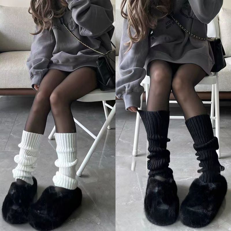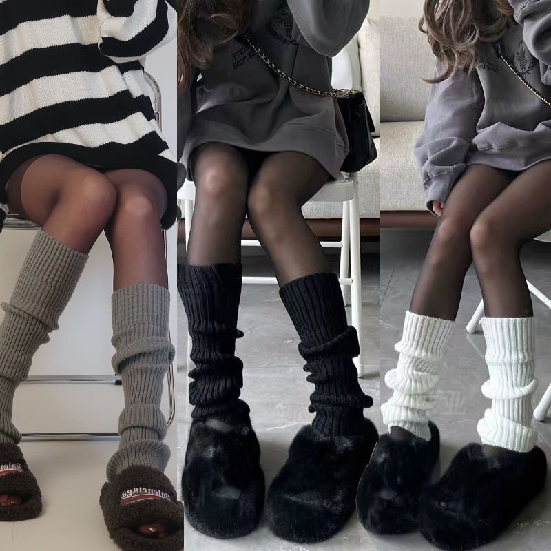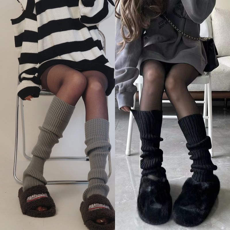 vertical stripes foot sock women autumn and winter knitting bunching socks show legs thin thick legs hot girls all-match simple leg warmer warm-keeping socks children