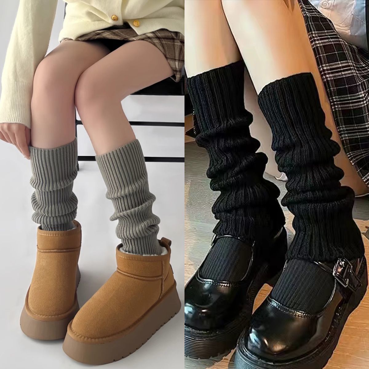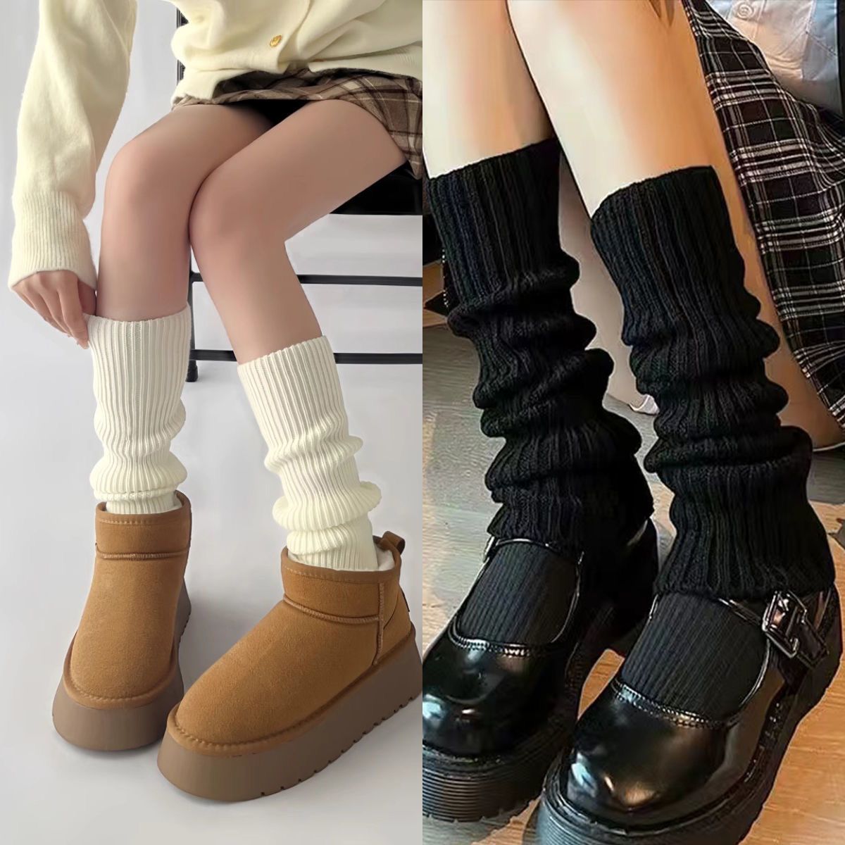 竖条袜套女秋冬针织堆堆袜显腿细粗腿辣妹百搭简约腿套保暖袜子女
