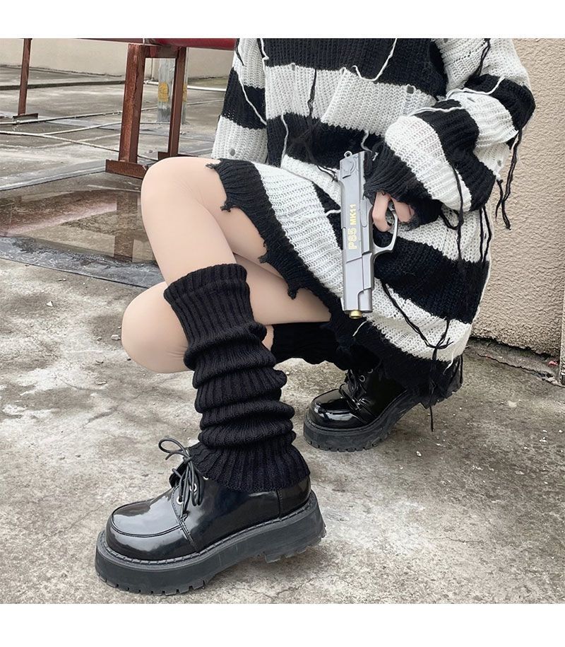 灰色袜套女秋冬针织堆堆袜显腿细粗腿辣妹百搭简约腿套保暖袜子女
