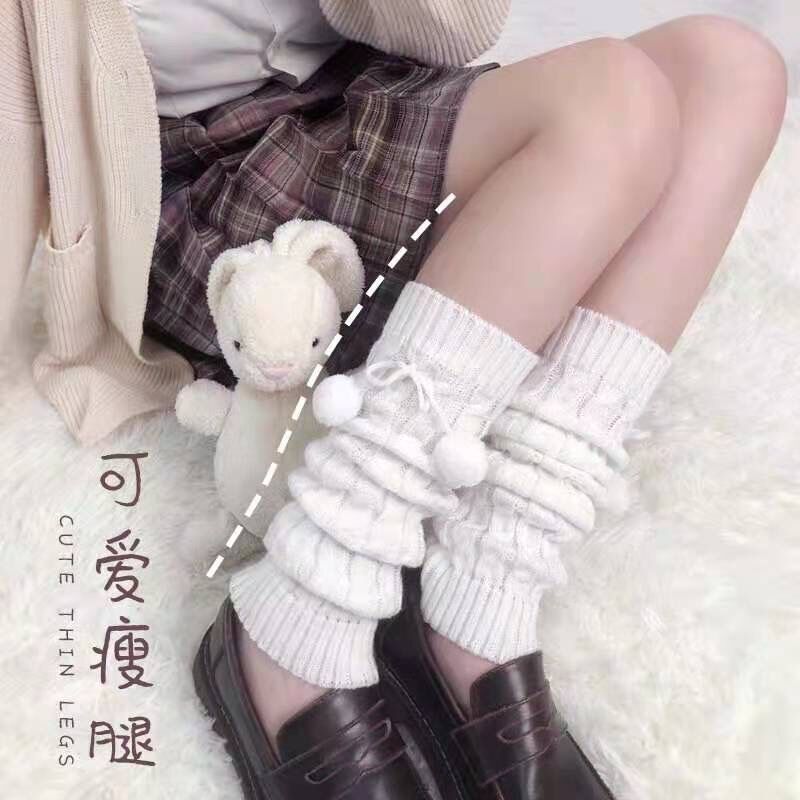 堆堆袜女秋冬显腿细JK日系护膝膝可爱女冬款套腿薄款ins毛球可爱
