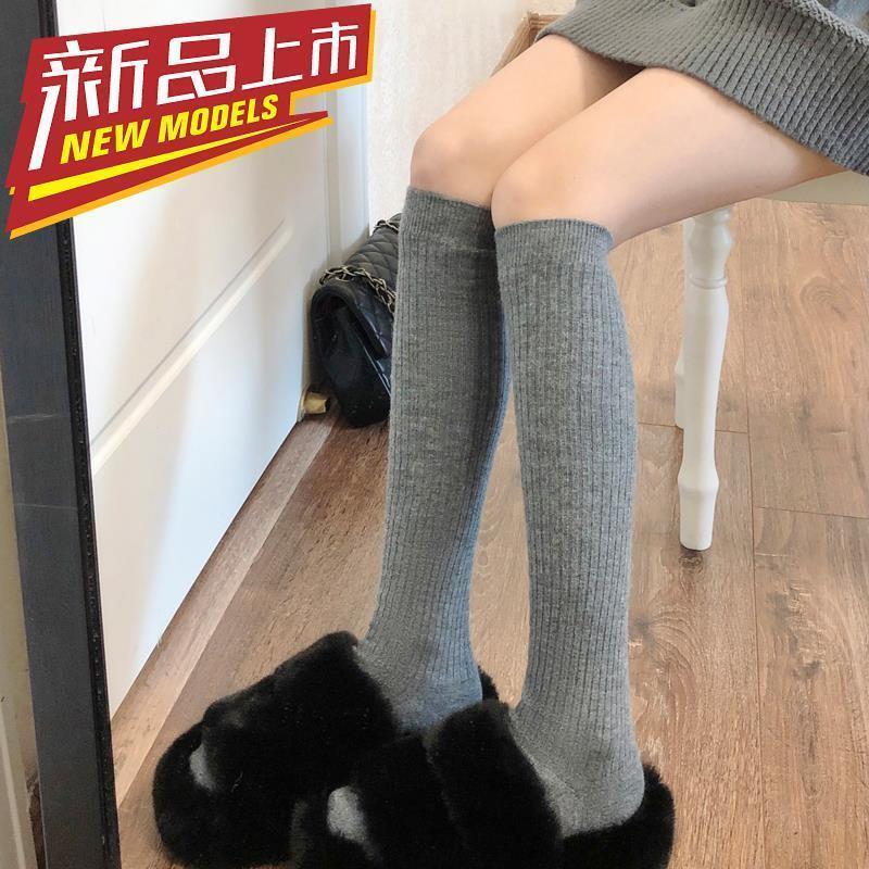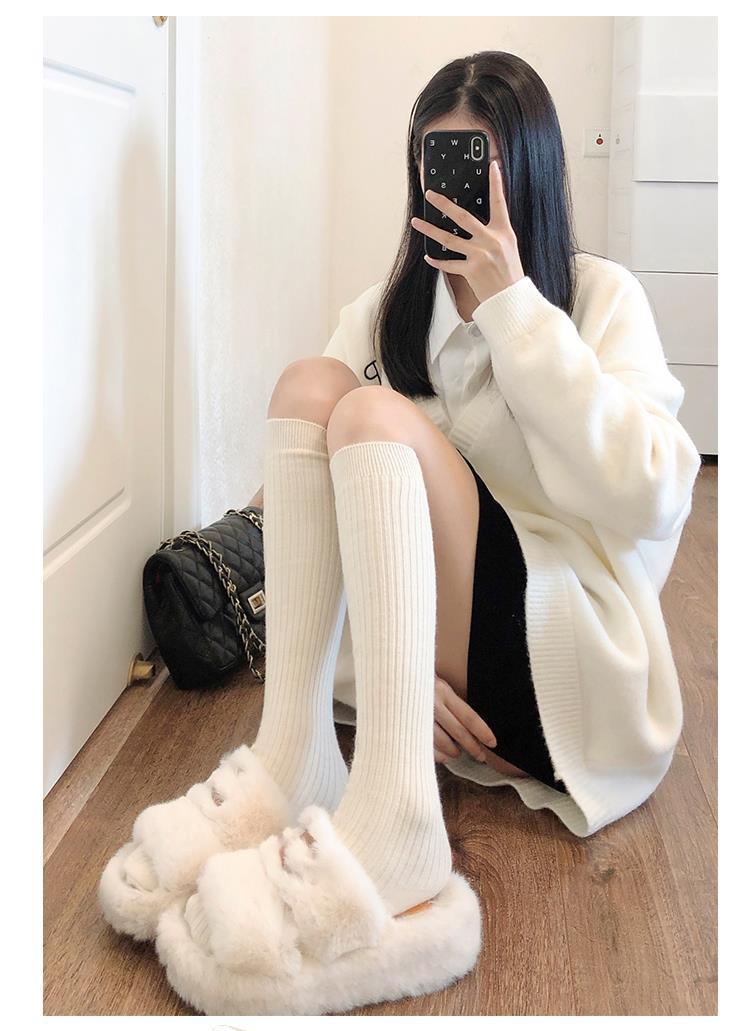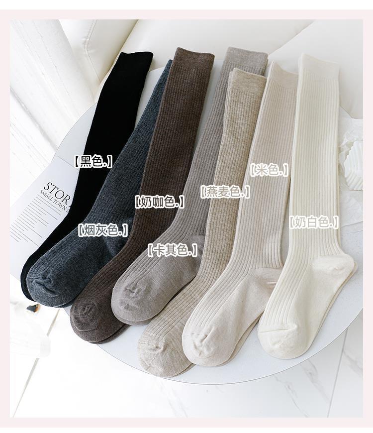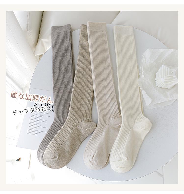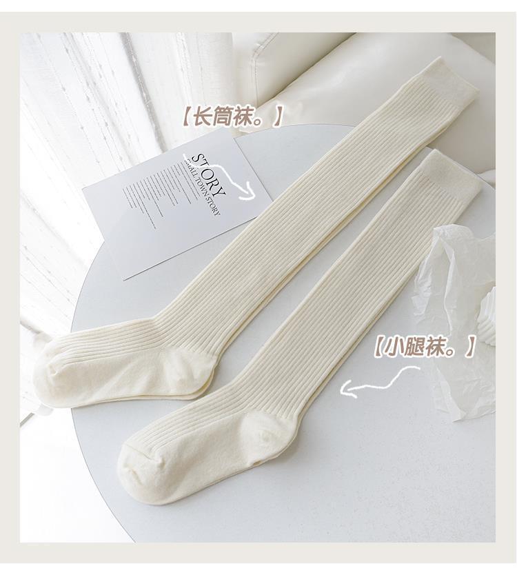 小腿袜秋冬季白色竖条纹长筒袜女百搭简约显瘦日系JK可爱堆堆袜