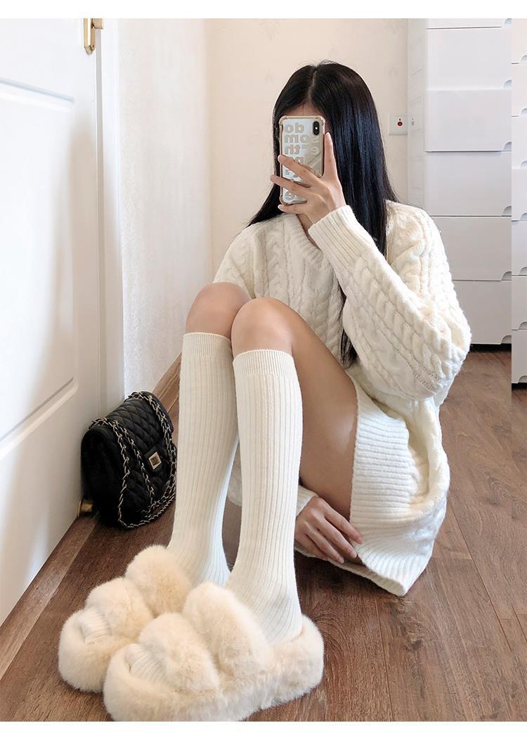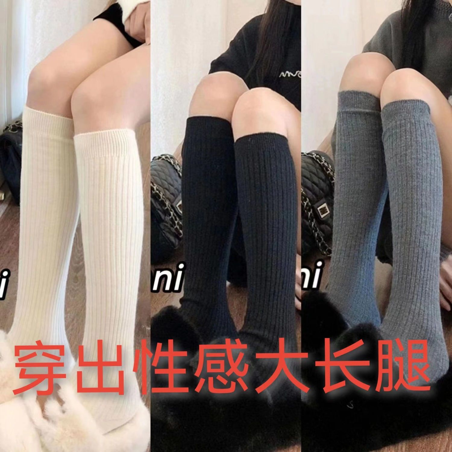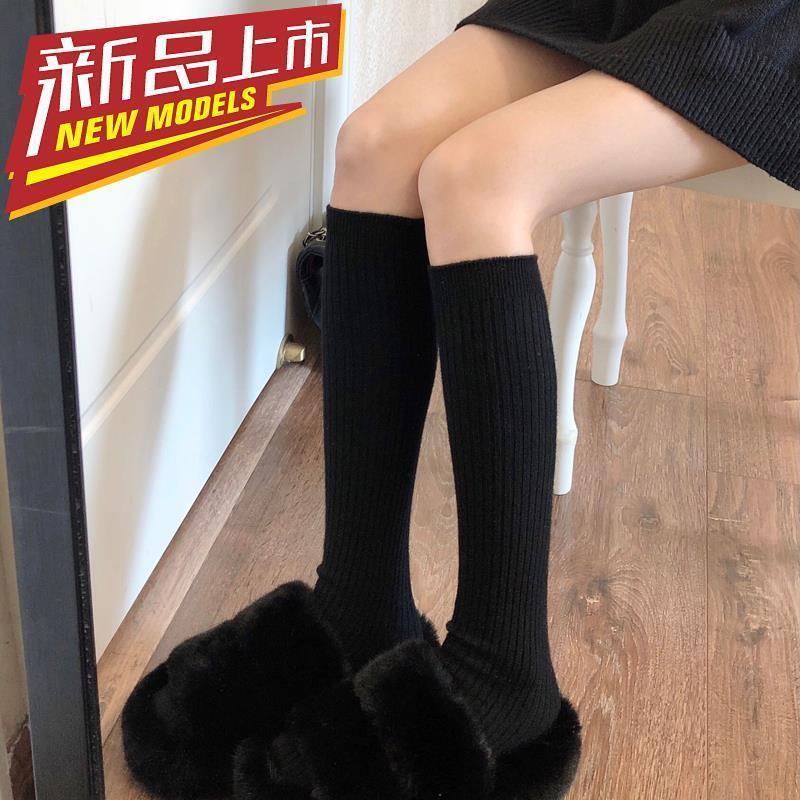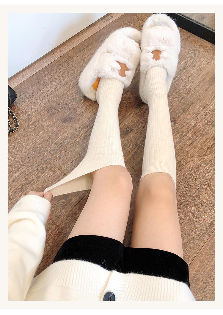 小腿袜秋冬季白色竖条纹长筒袜女百搭简约显瘦日系JK可爱堆堆袜