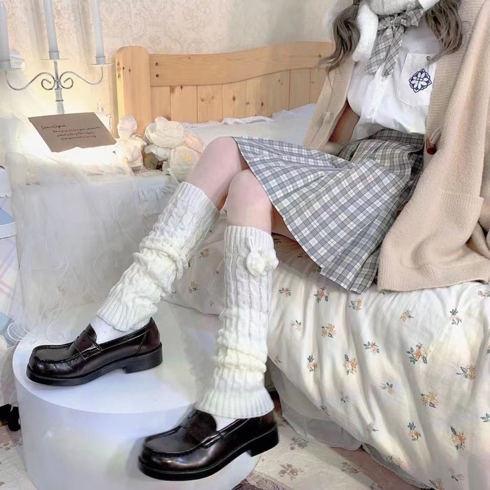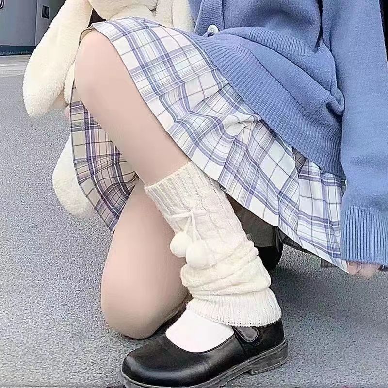 洛丽塔女袜套夏季蝴蝶结jk毛球袜百搭显腿细粗腿学生Lolita堆堆袜
