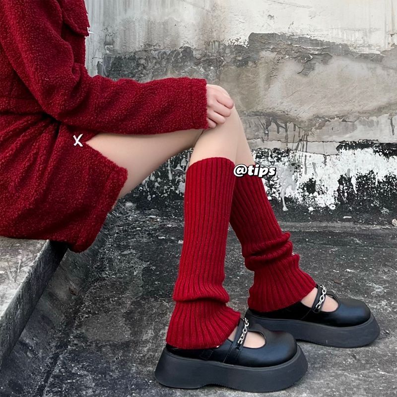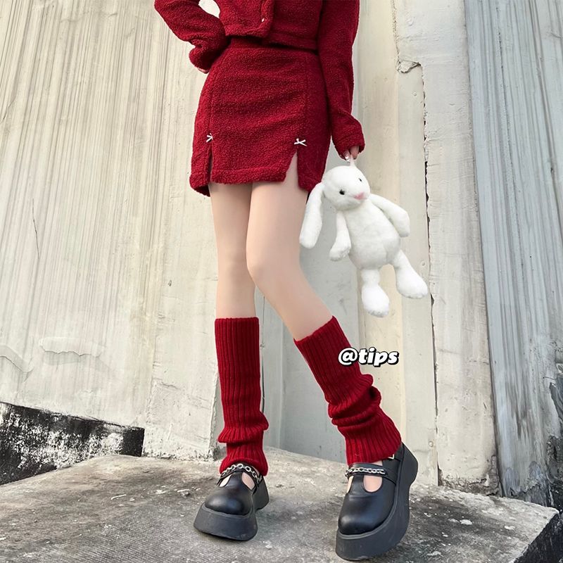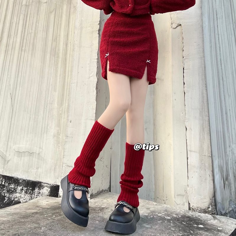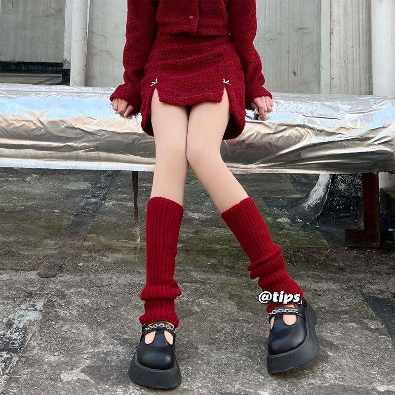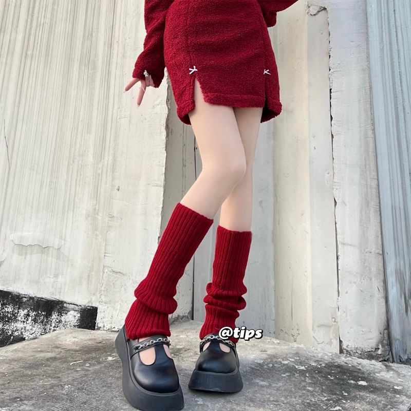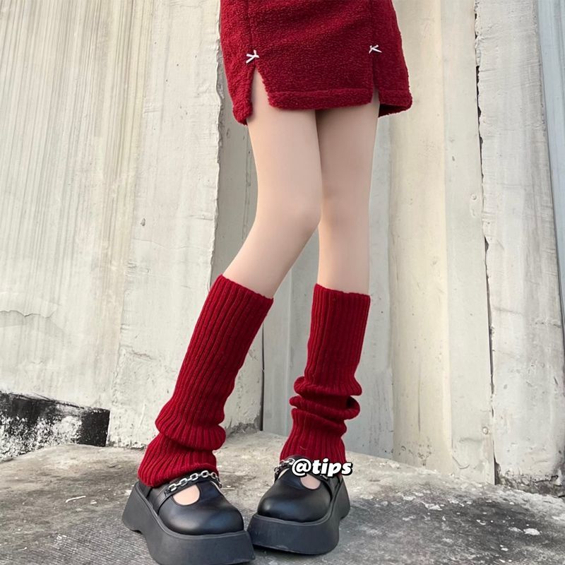 TIPS新年酒红色千禧风辣妹袜套JK少女百搭圣诞Y2K堆堆腿套
