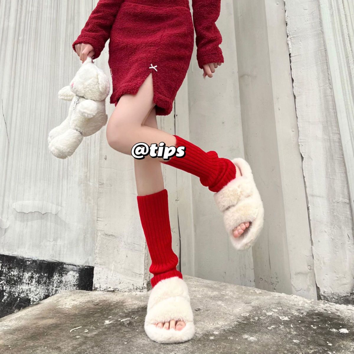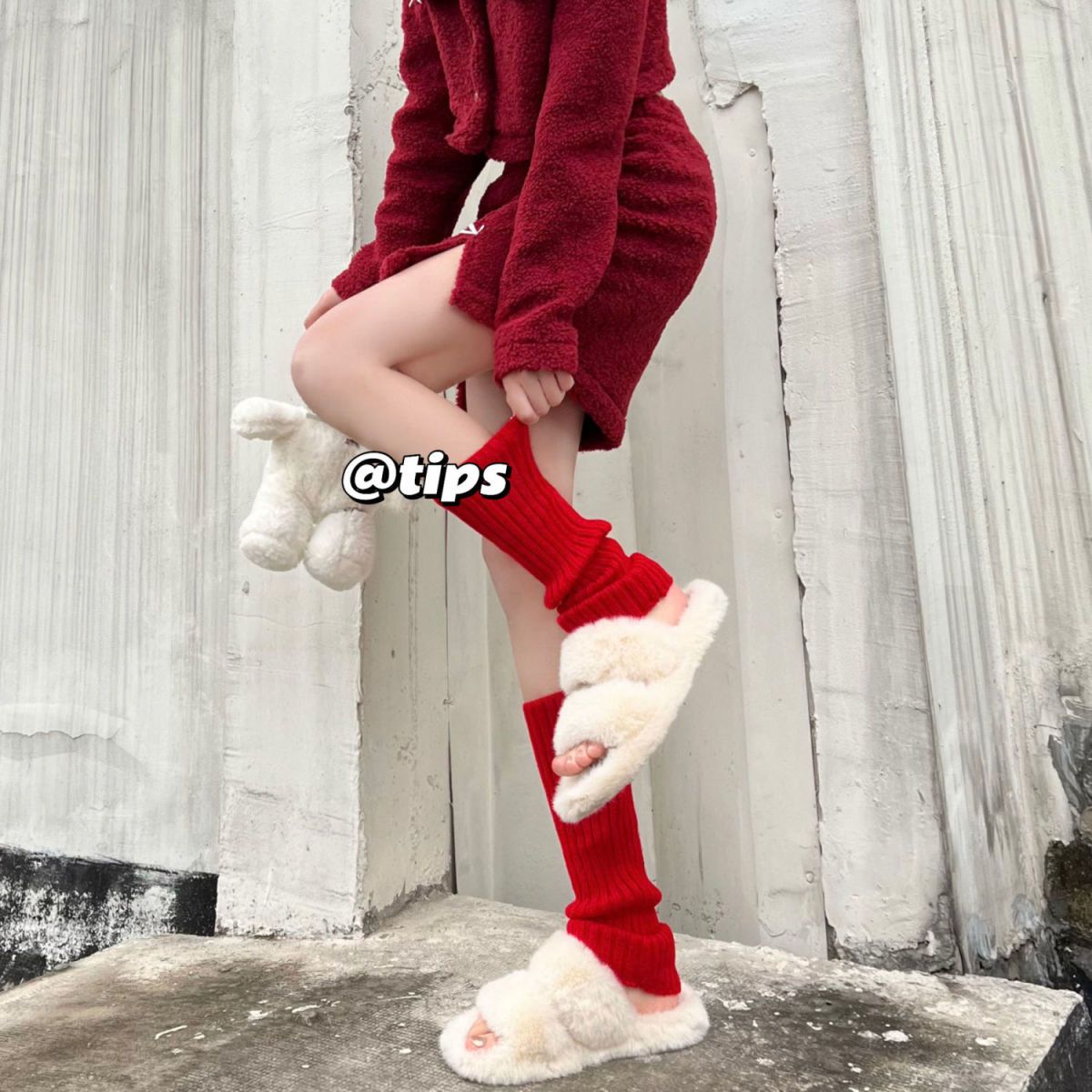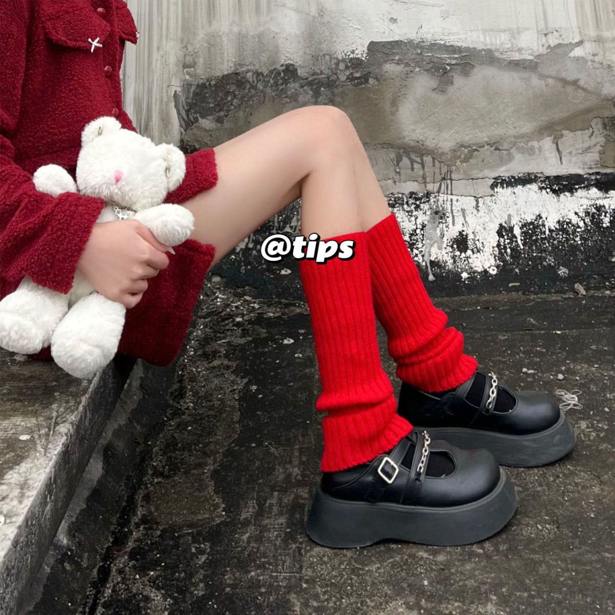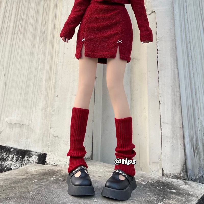 TIPS新年酒红色千禧风辣妹袜套JK少女百搭圣诞Y2K堆堆腿套