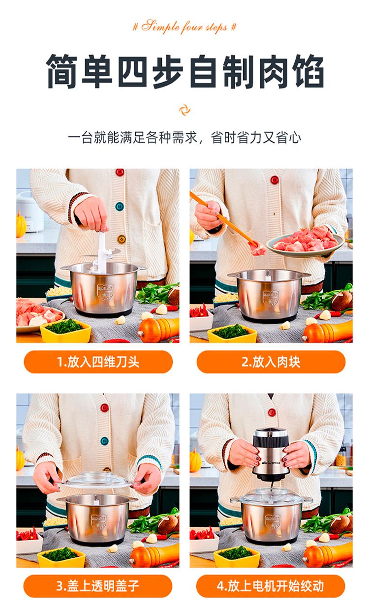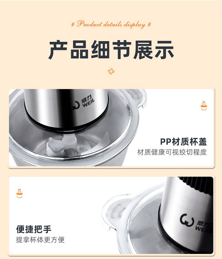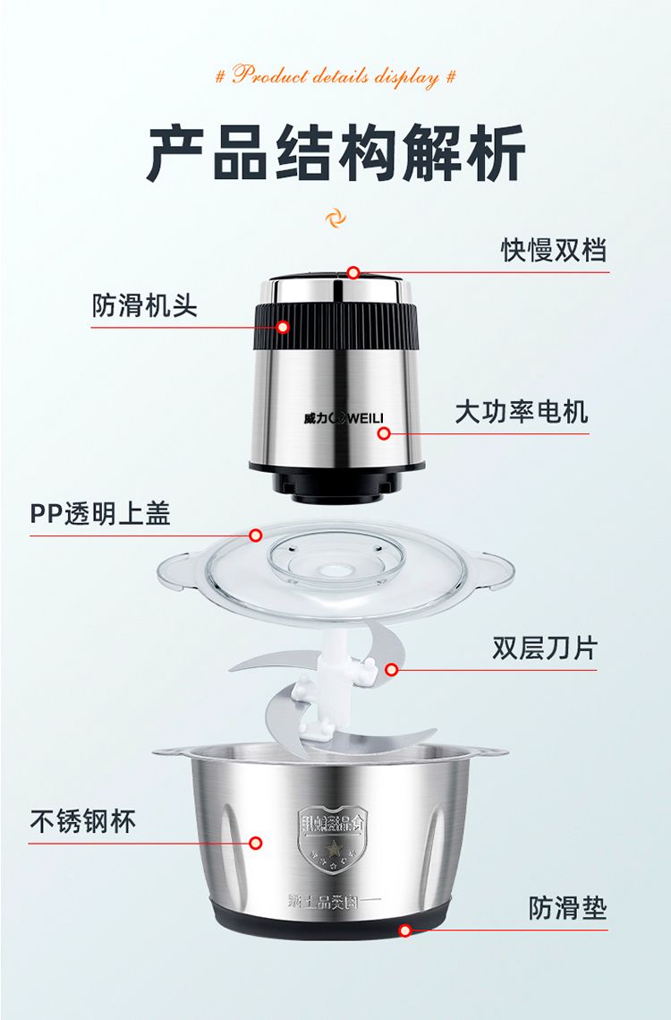 威力绞肉机家用小型打肉馅不锈钢多功能电动料理器蒜蓉绞馅机碎菜