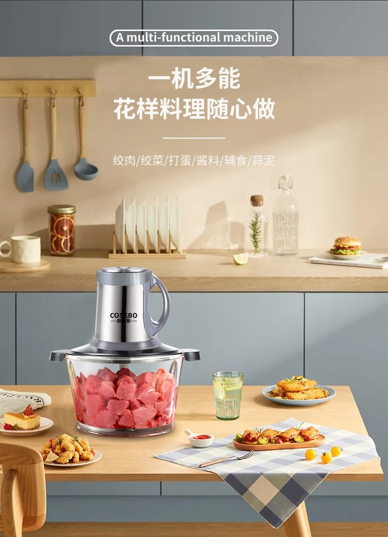 德国COSEBO绞肉机玻璃家用电动多功能馅机泥器辣椒粉碎蒜蓉辅食机