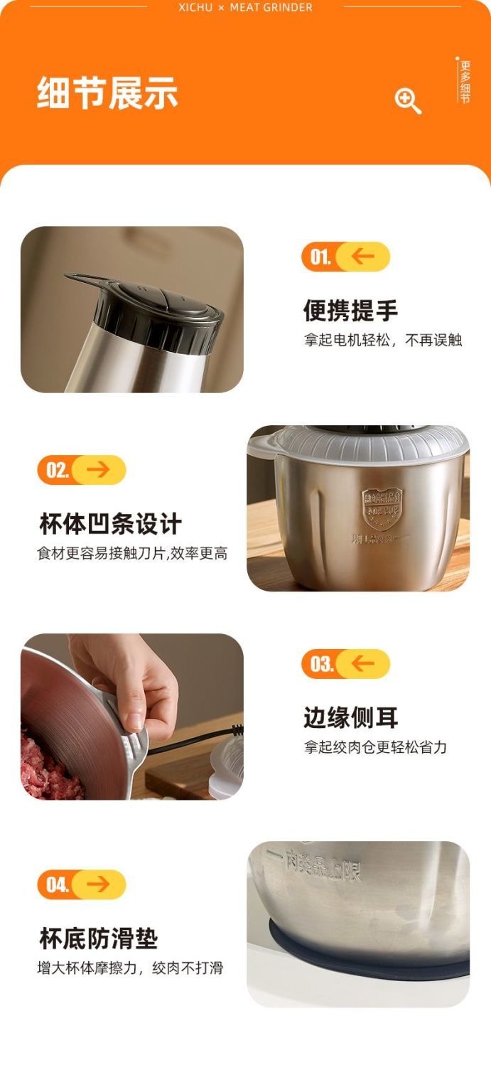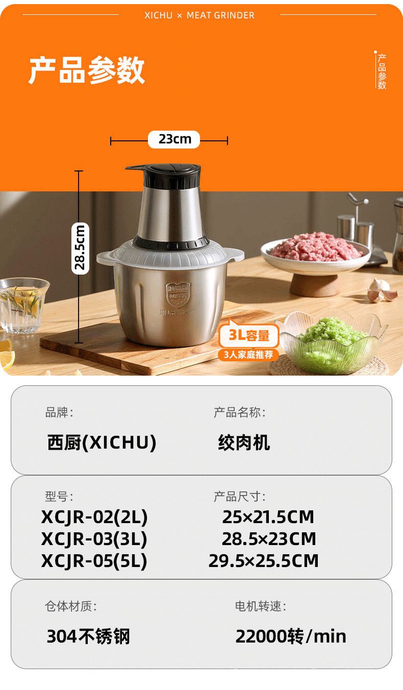 西厨多功能果蔬料理机电动绞肉机搅拌机绞馅机蒜蓉泥器辣椒粉碎机