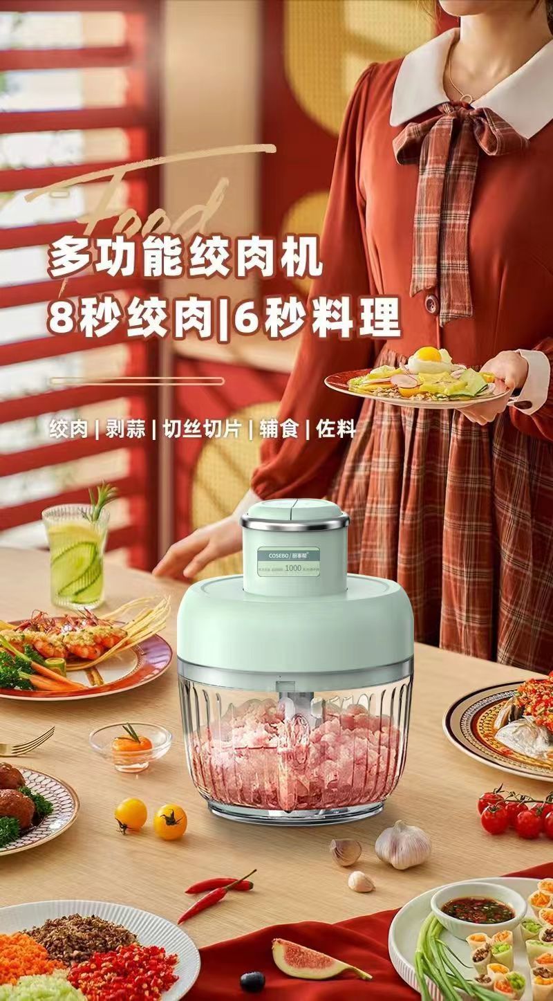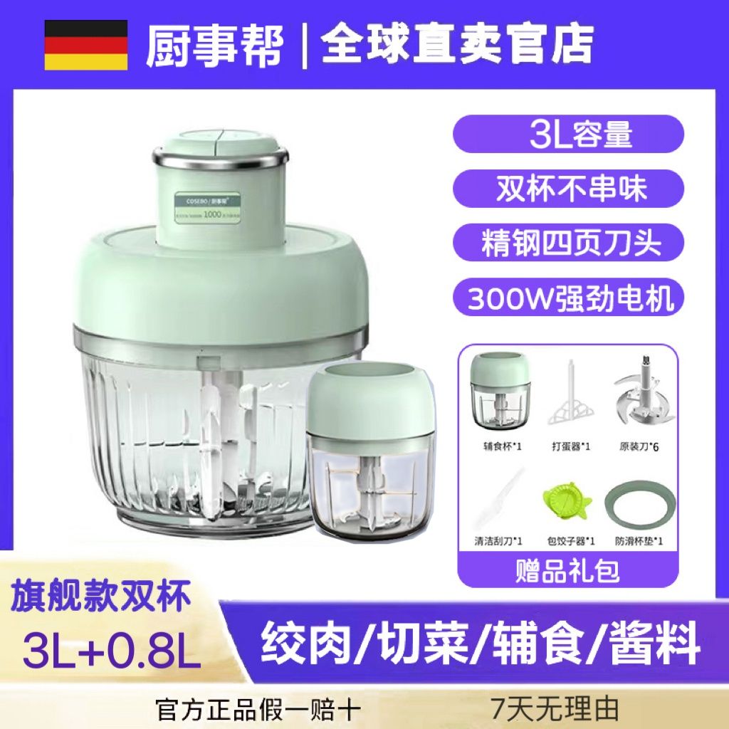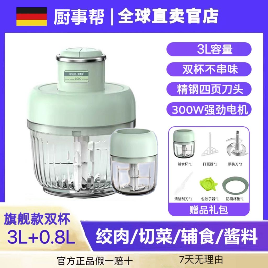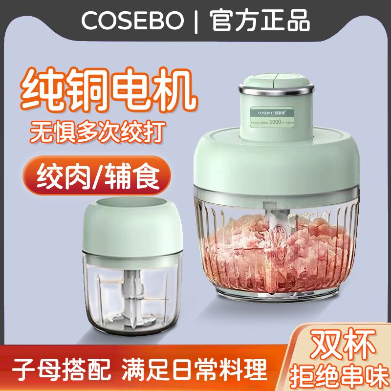 德国COSEBO绞肉机电动多功能蒜泥辣椒神器碎肉馅料理辅食家用双杯