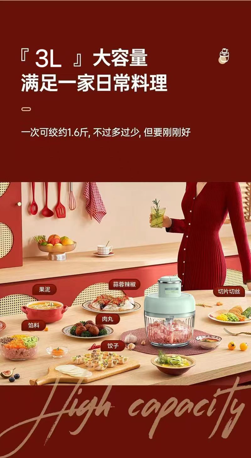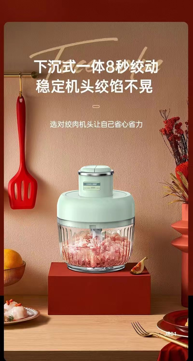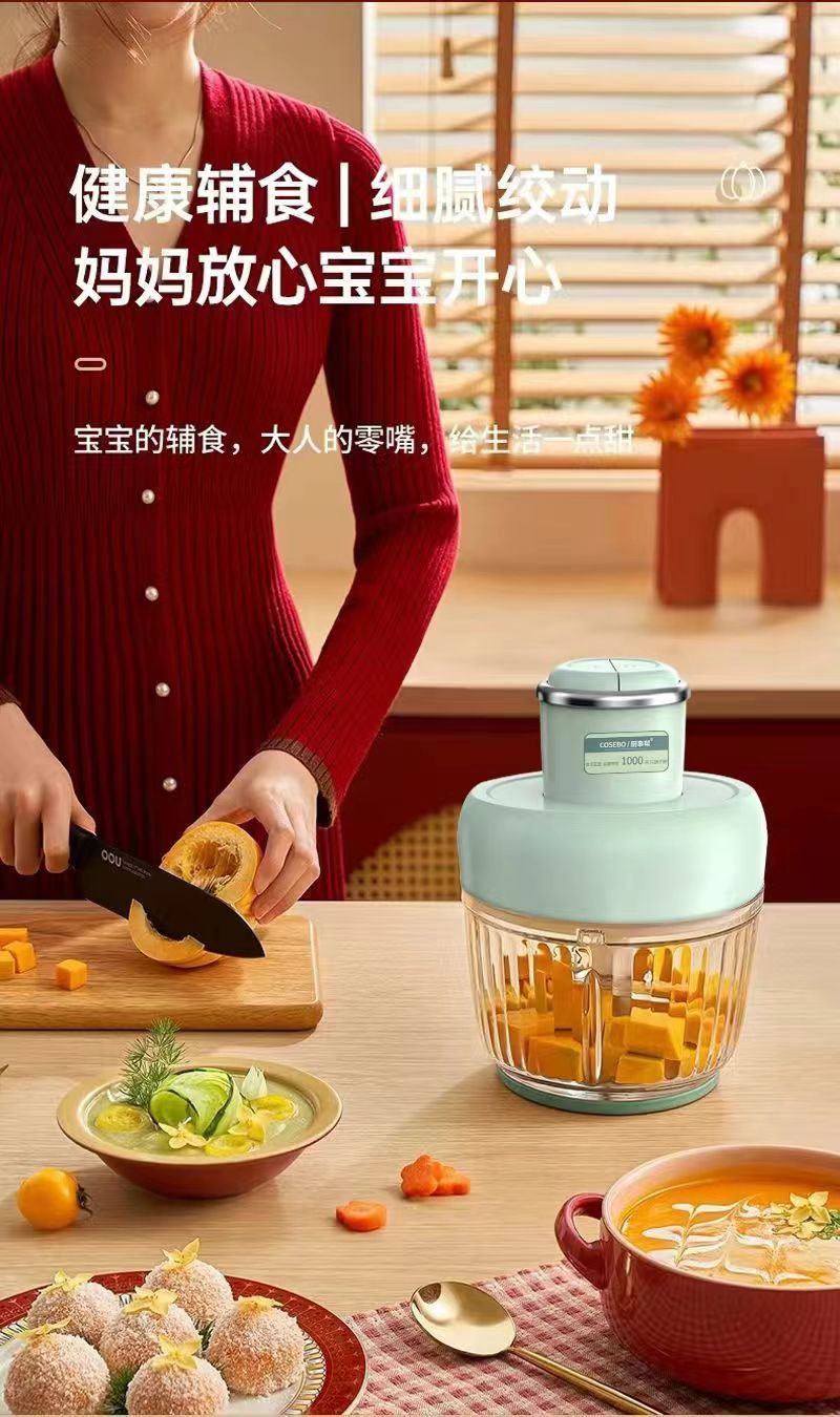 德国COSEBO绞肉机电动多功能蒜泥辣椒神器碎肉馅料理辅食家用双杯