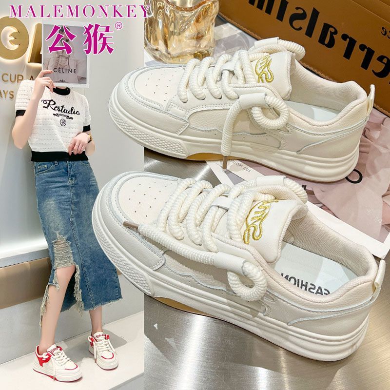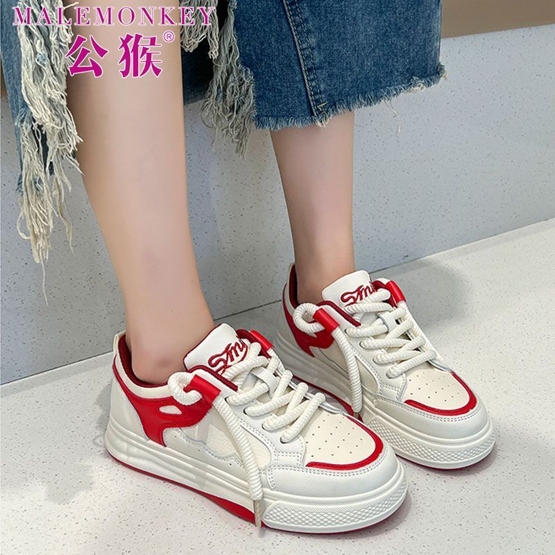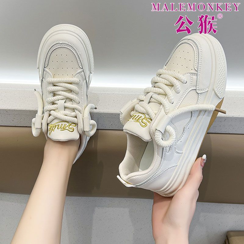 公猴厚底面包鞋女小白鞋2024新款春网鞋百搭运动休闲鞋小众板鞋