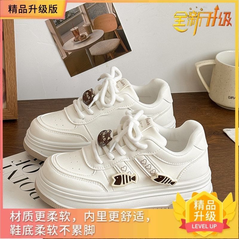 原创爆改小众面包鞋女2025春季新款厚底小鱼百搭潮流板鞋小白鞋女