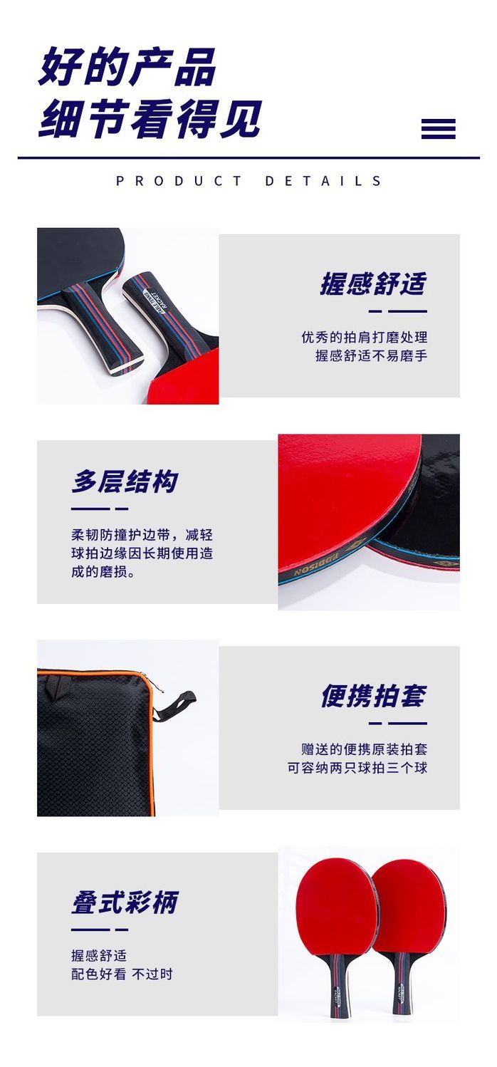 正品乒乓球拍一套两拍三球横拍乒乓球球拍套装ABS乒乓球高弹