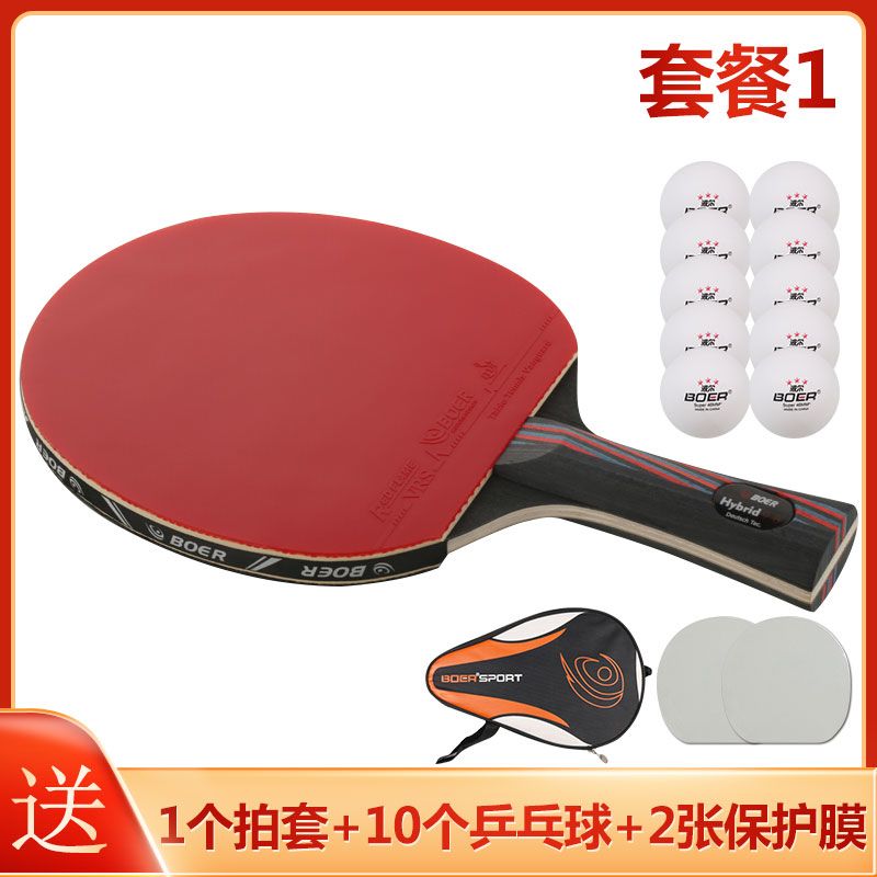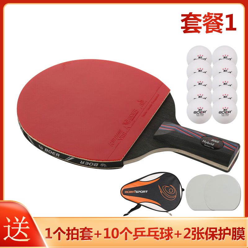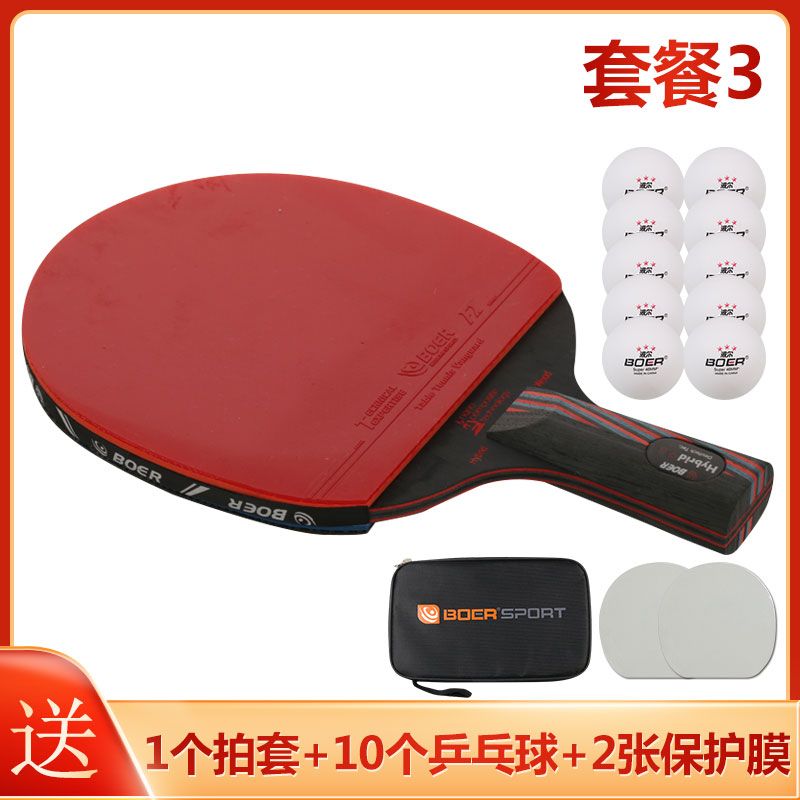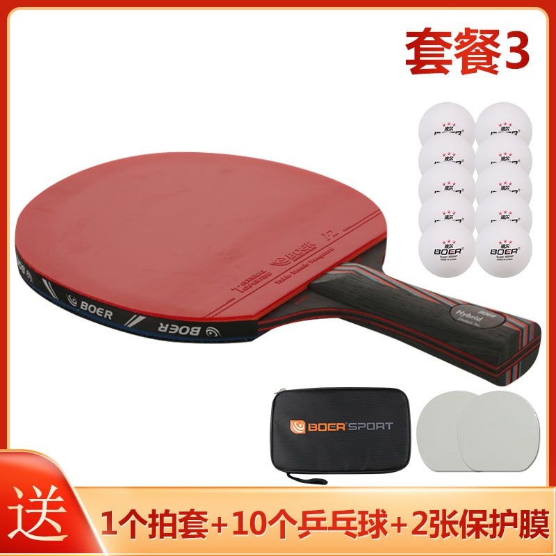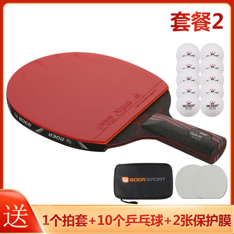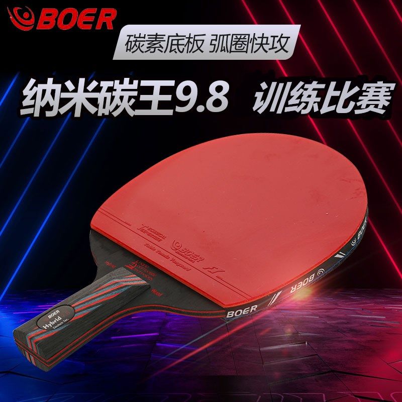 波尔乒乓球拍正品单拍一只初学者儿童纳米碳王成人横拍直拍训练拍