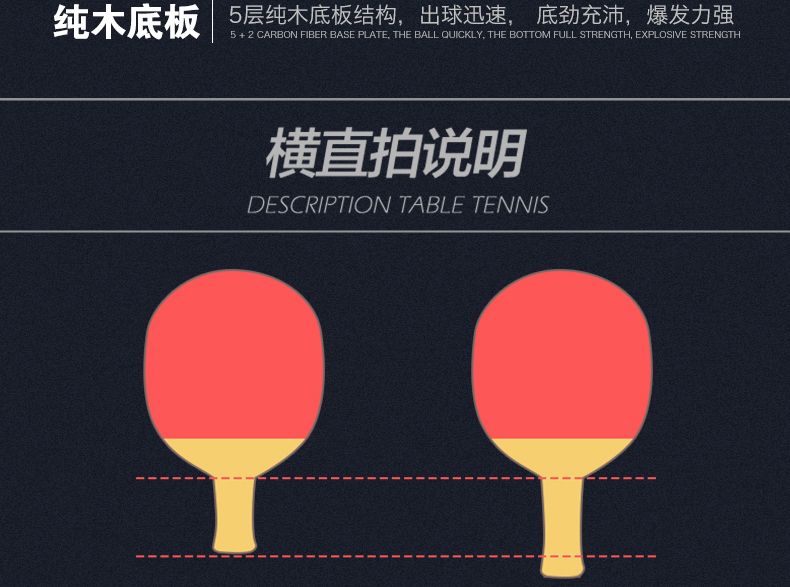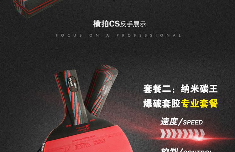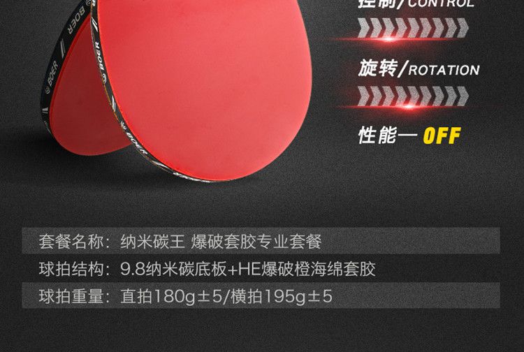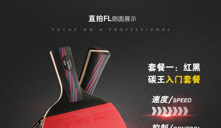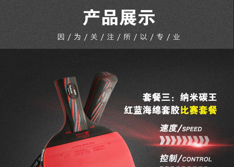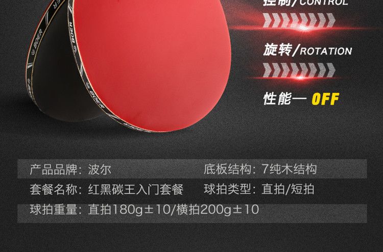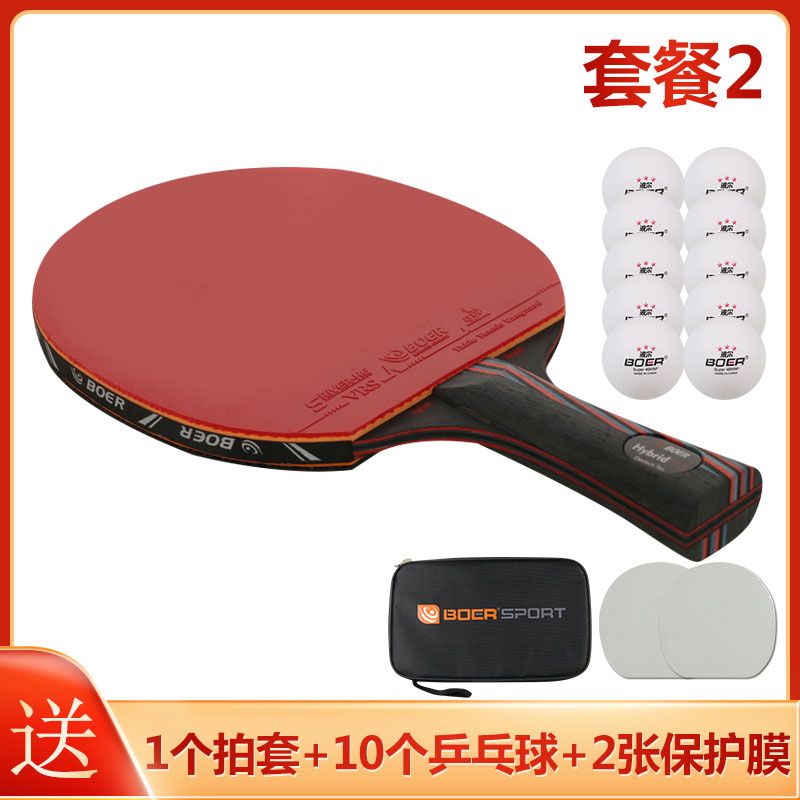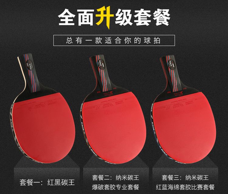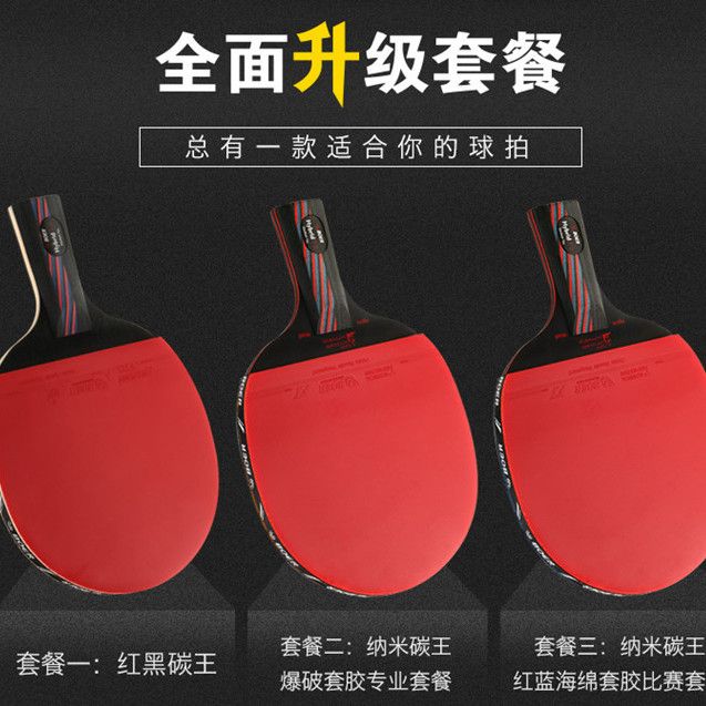 波尔乒乓球拍正品单拍一只初学者儿童纳米碳王成人横拍直拍训练拍