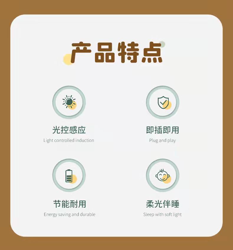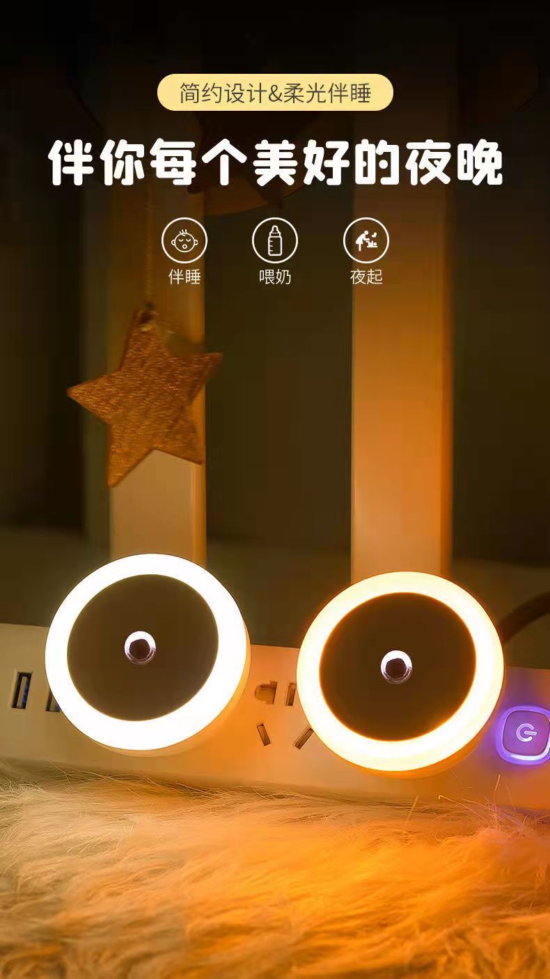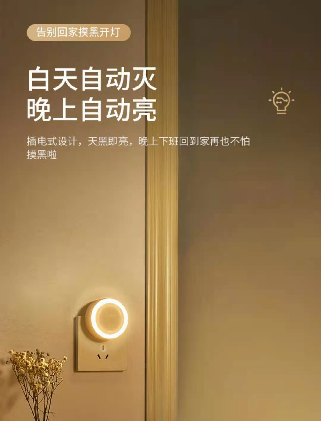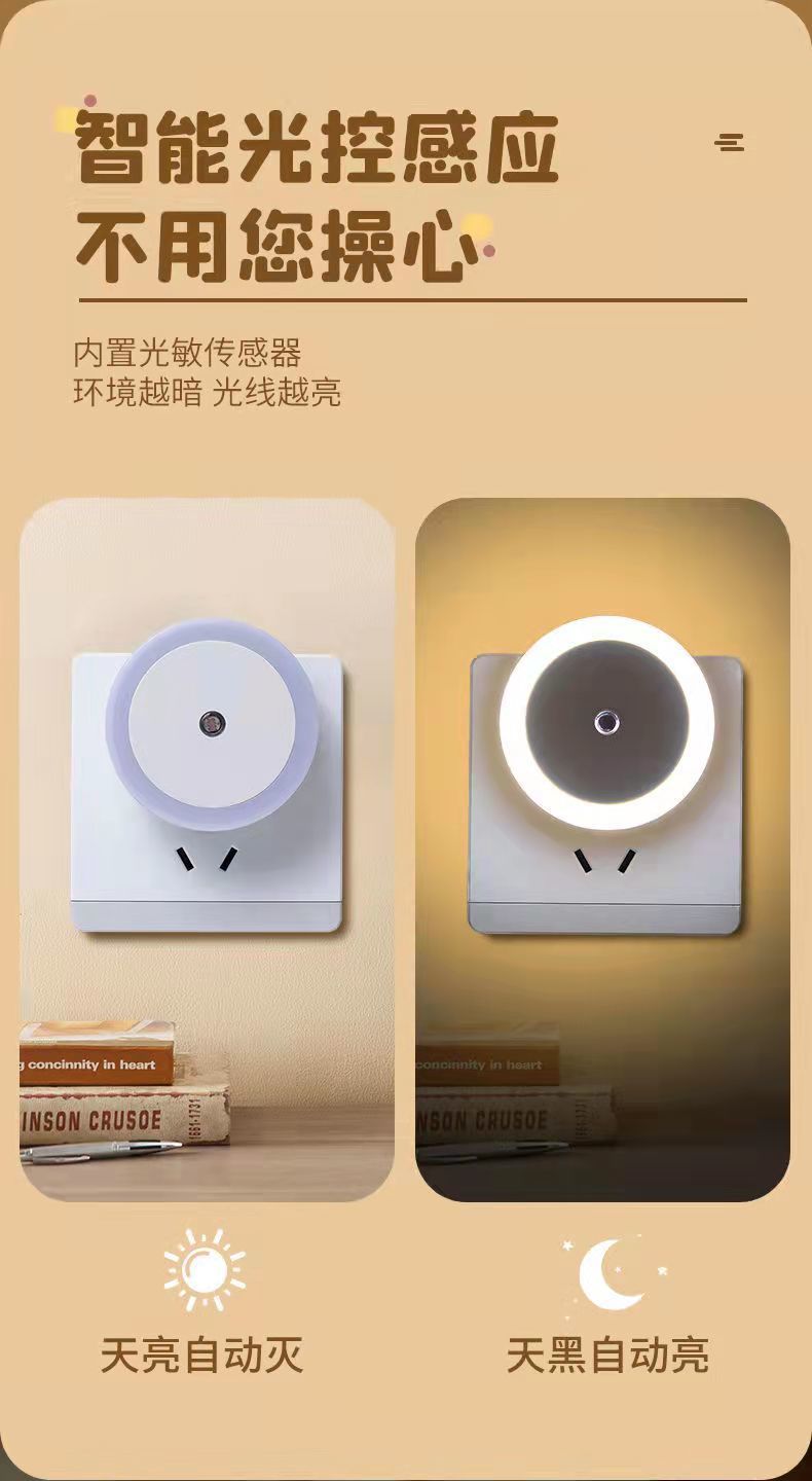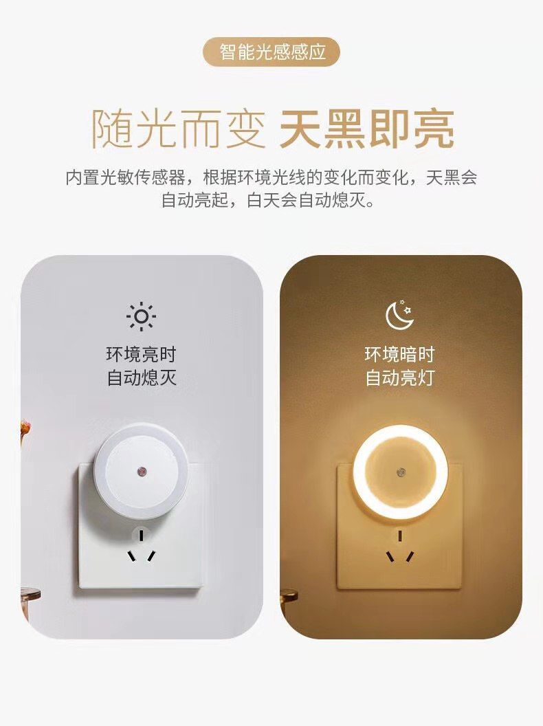小夜灯光控感应插座插电夜光灯卧室led喂奶灯节能灯儿童睡觉壁灯