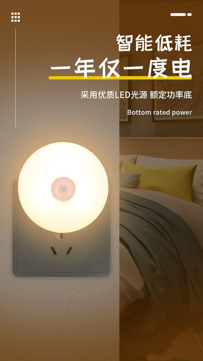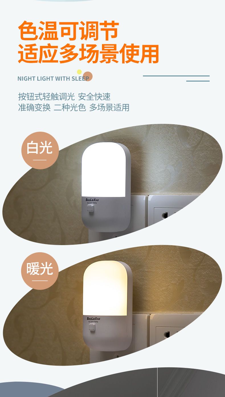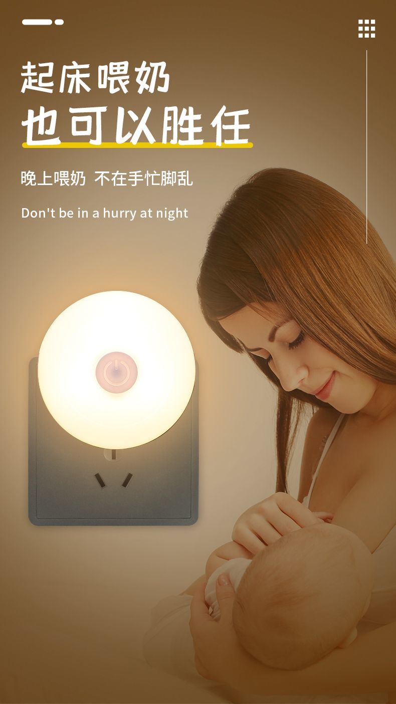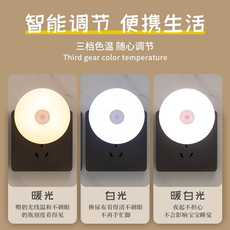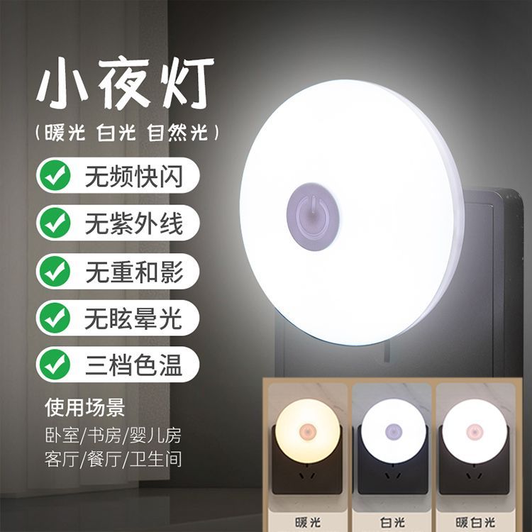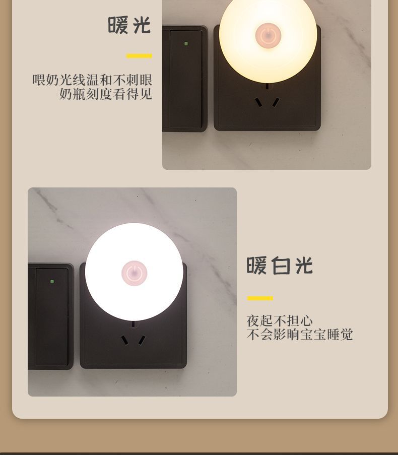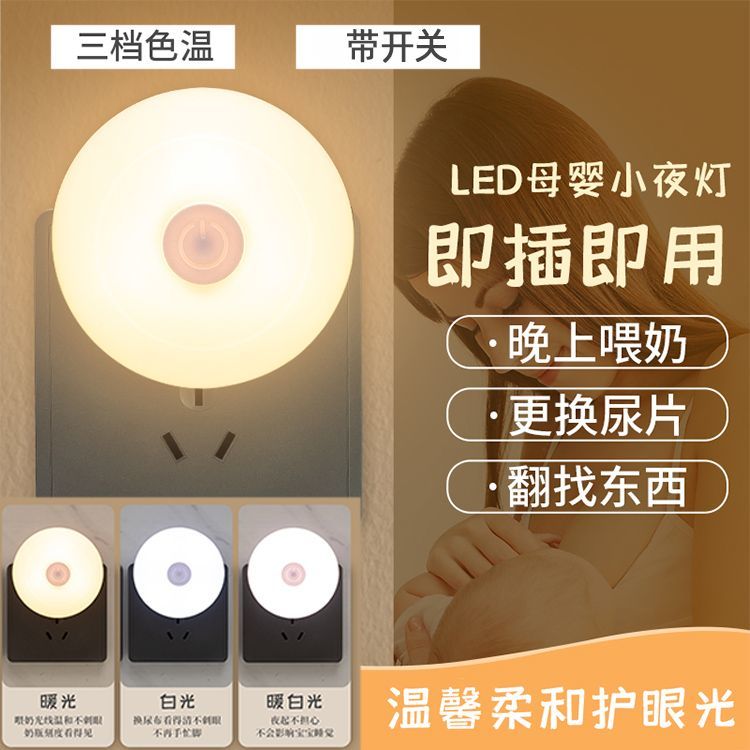 小夜灯带开关LED插电可调节多色/单色卧室床头插座节能婴儿喂奶灯