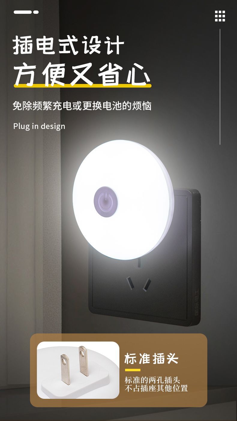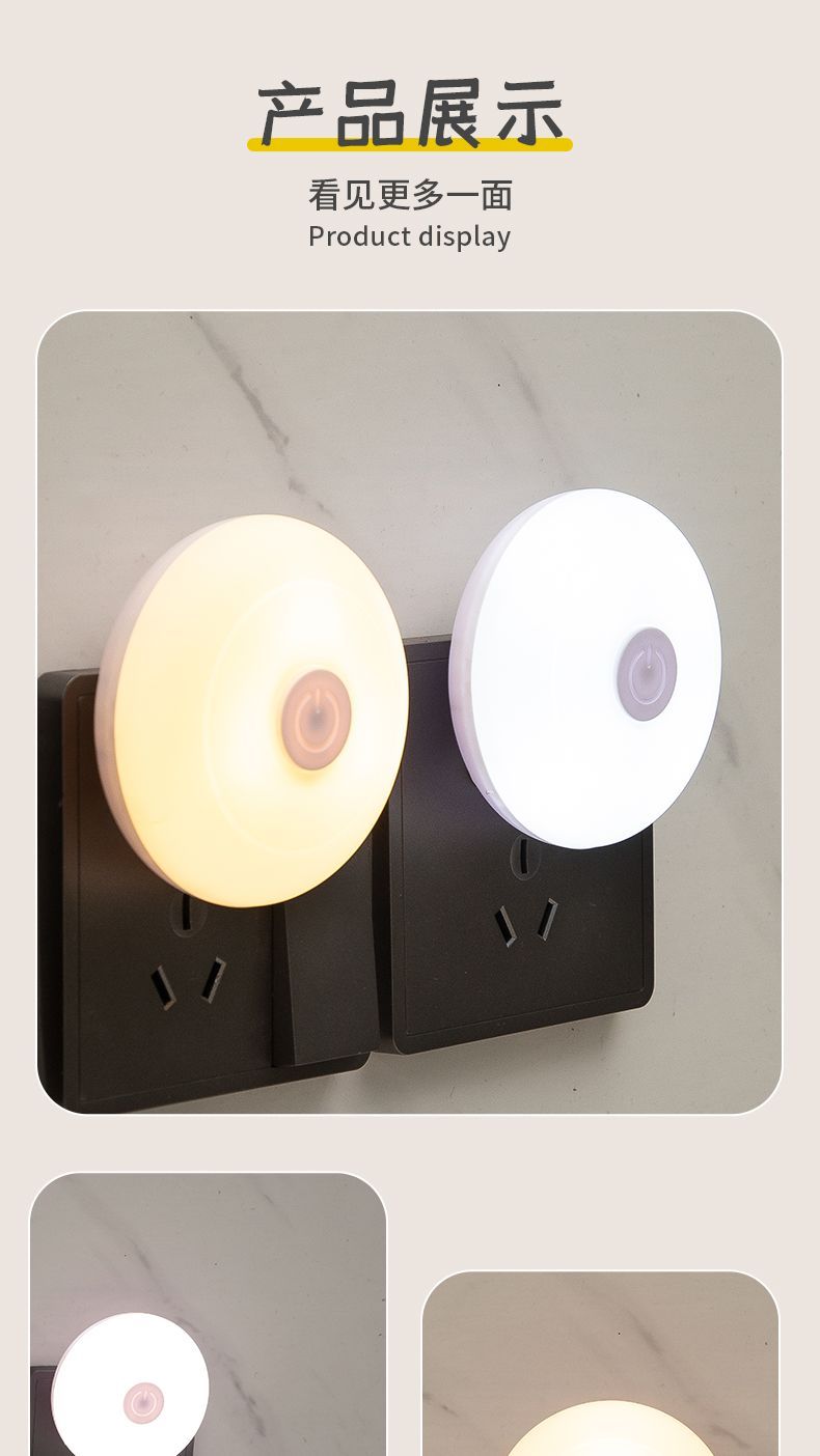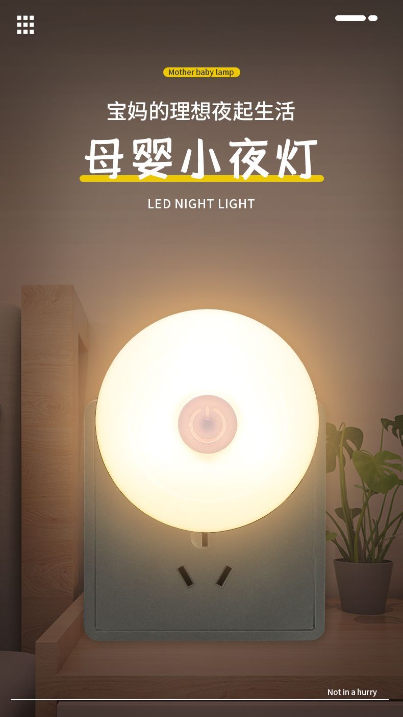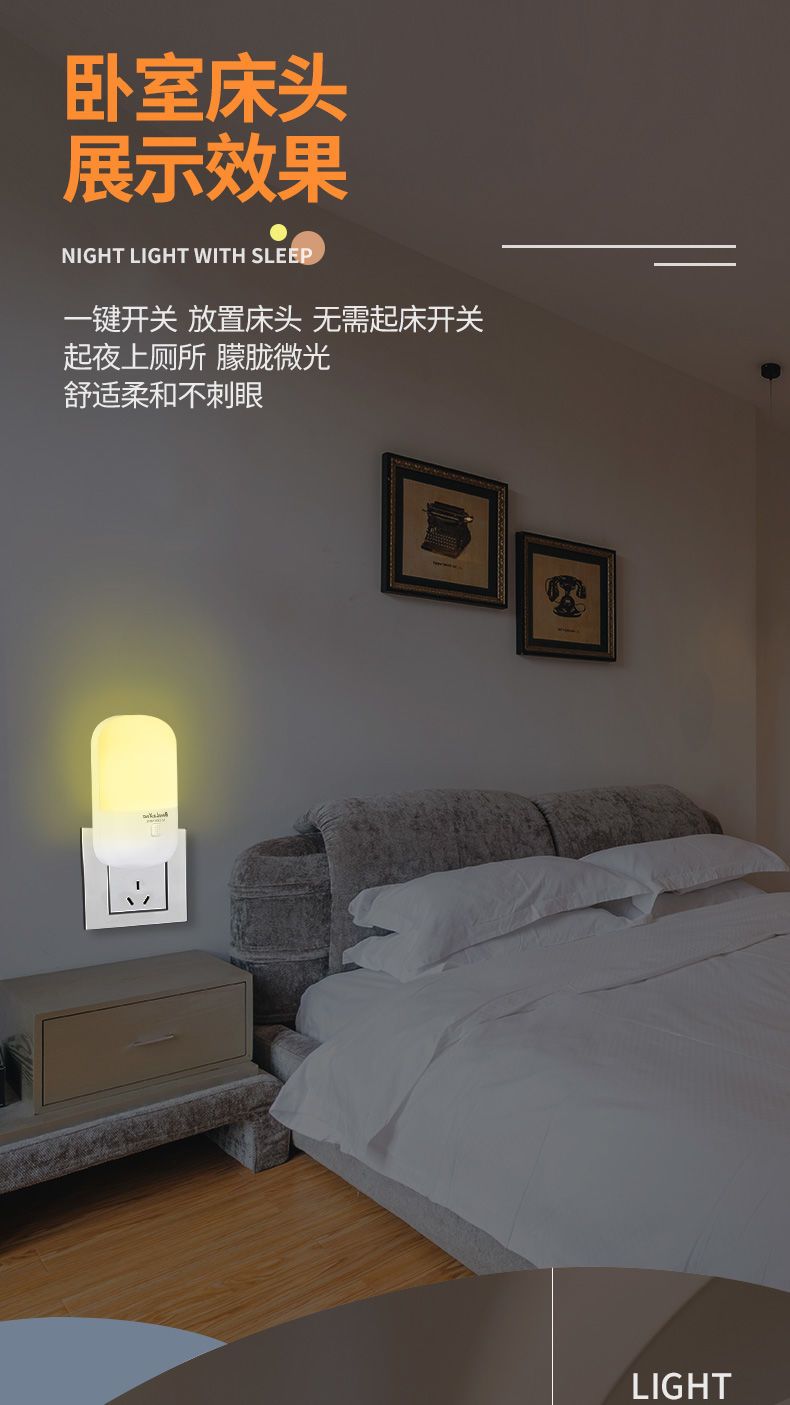 小夜灯带开关LED插电可调节多色/单色卧室床头插座节能婴儿喂奶灯