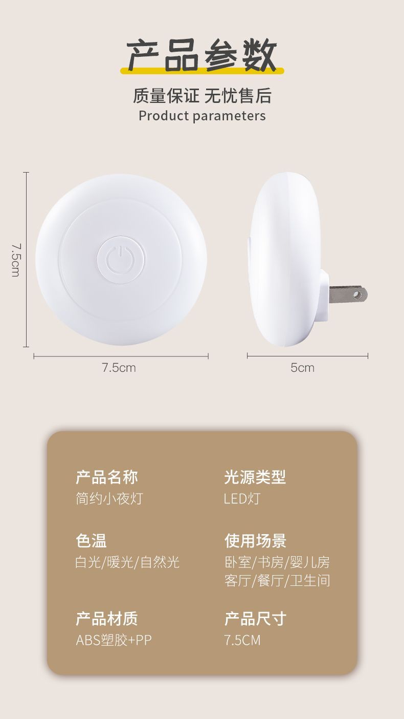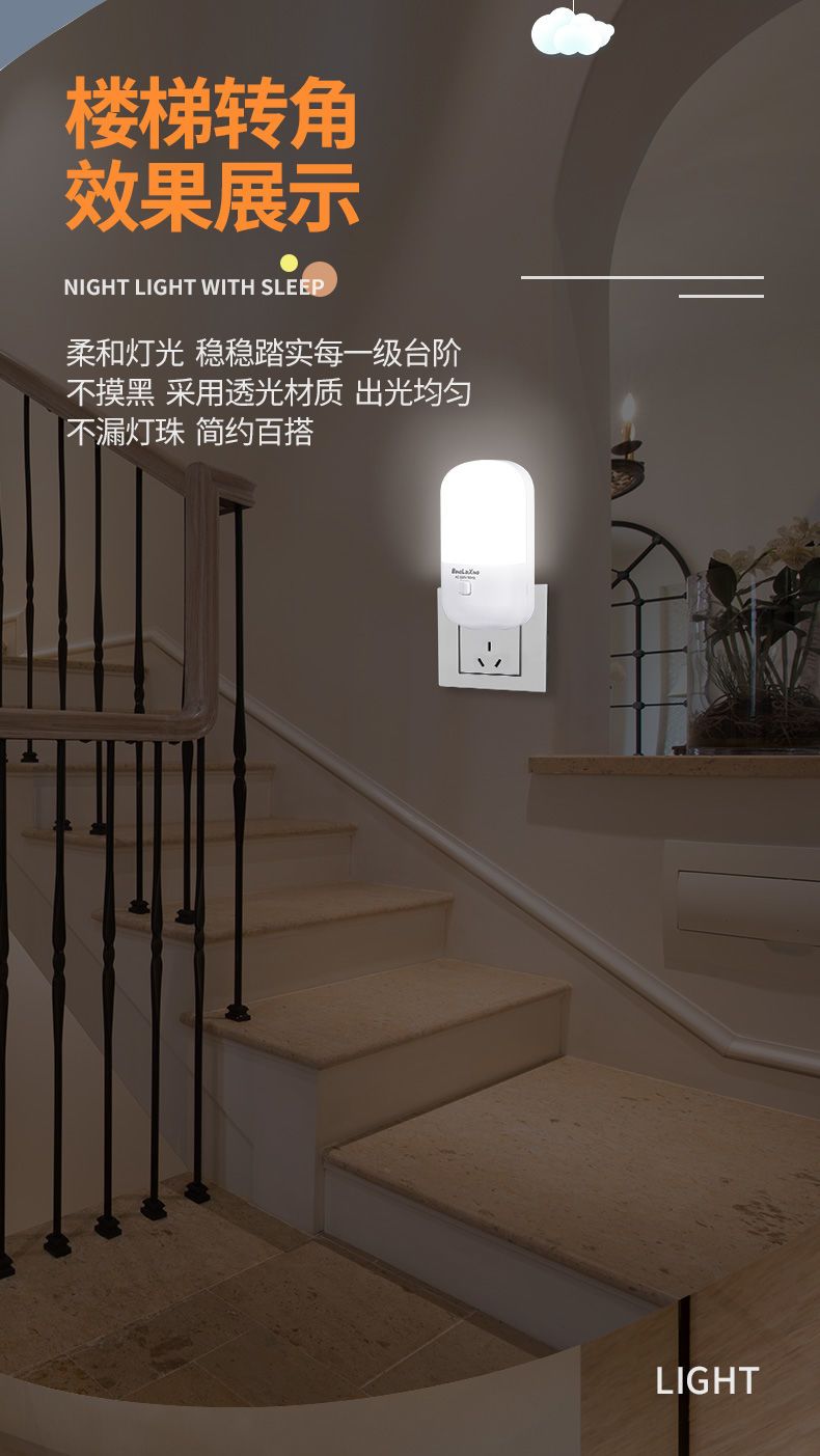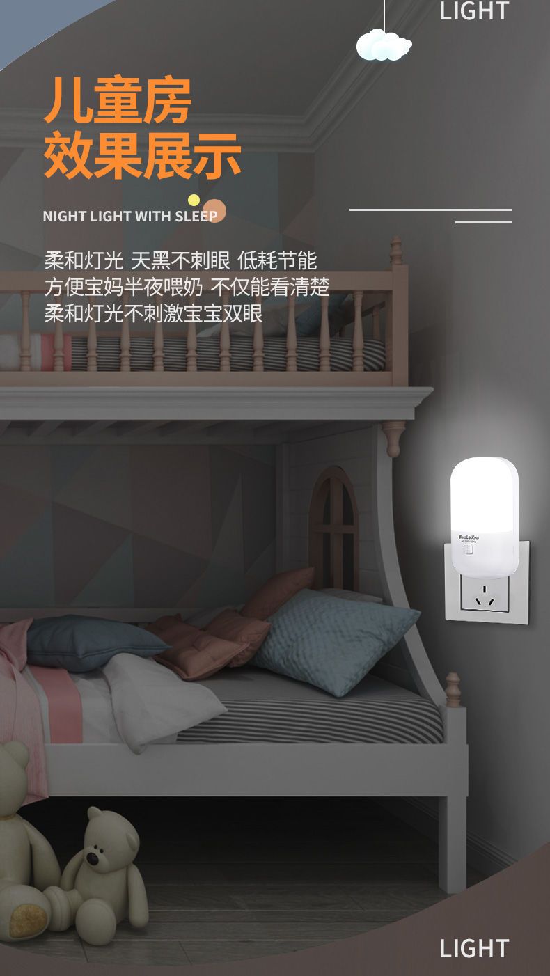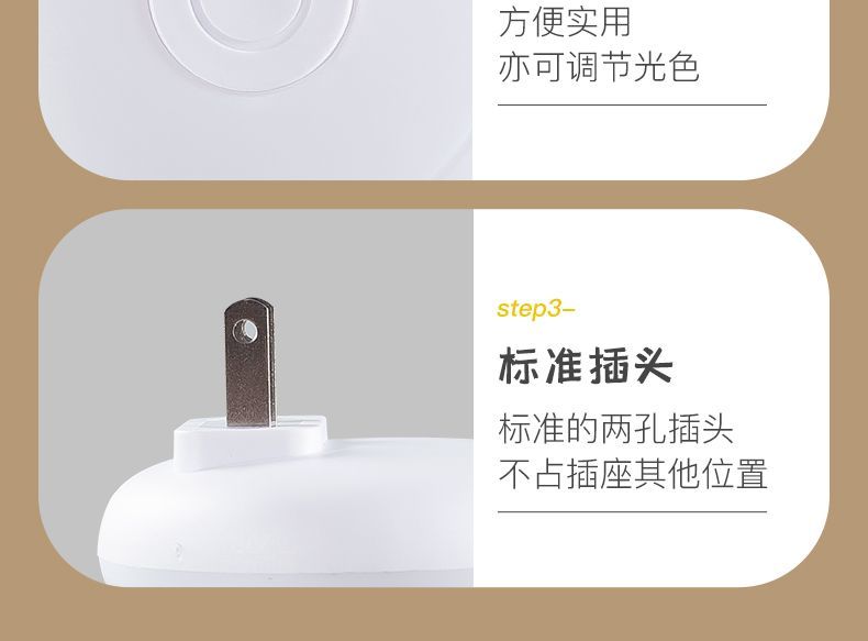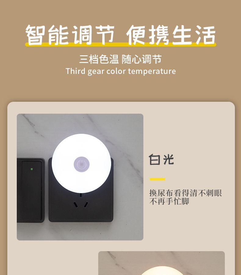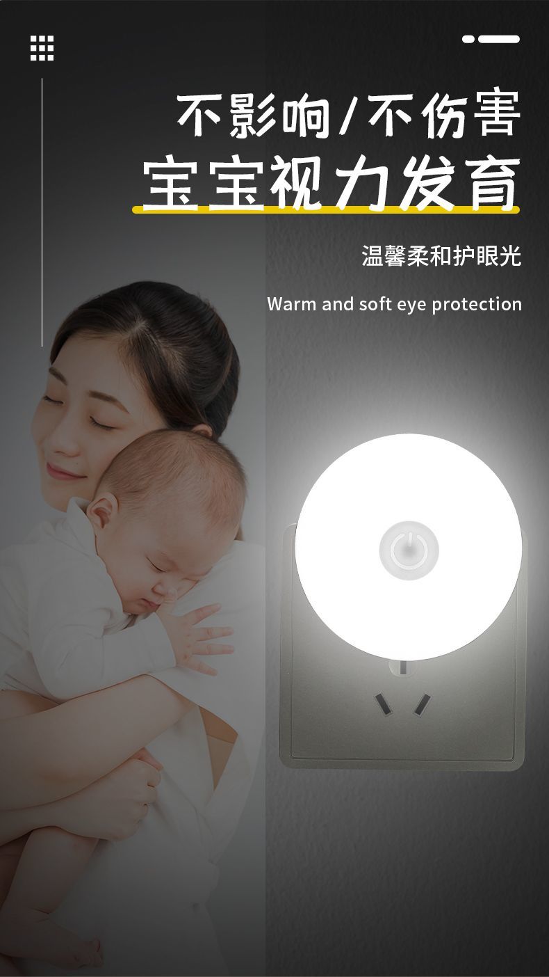 小夜灯带开关LED插电可调节多色/单色卧室床头插座节能婴儿喂奶灯