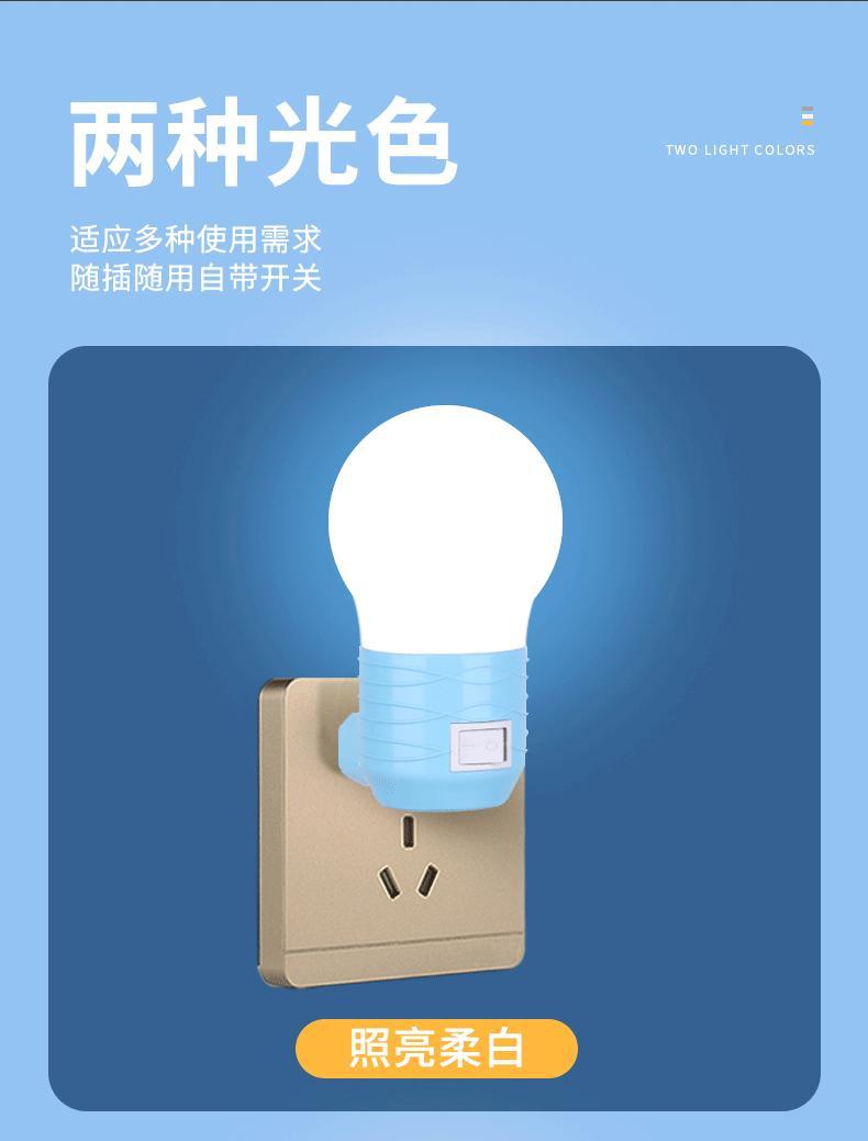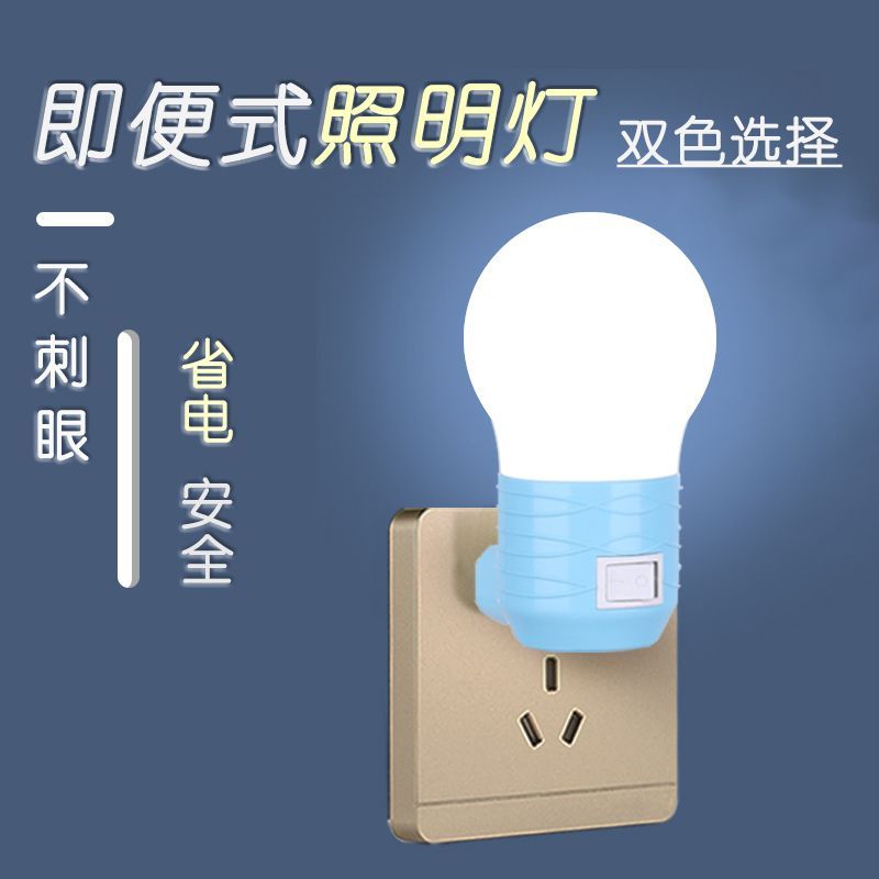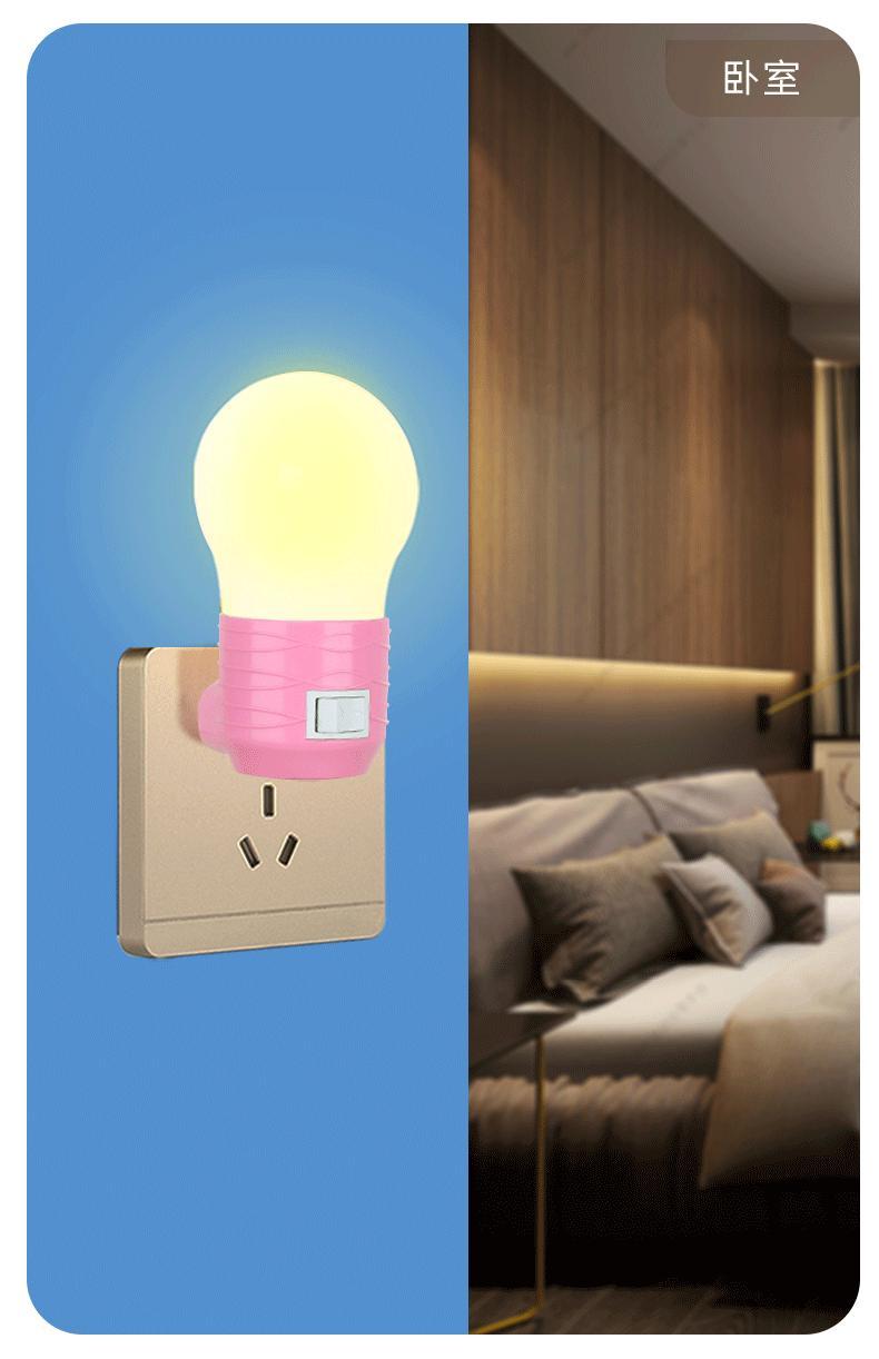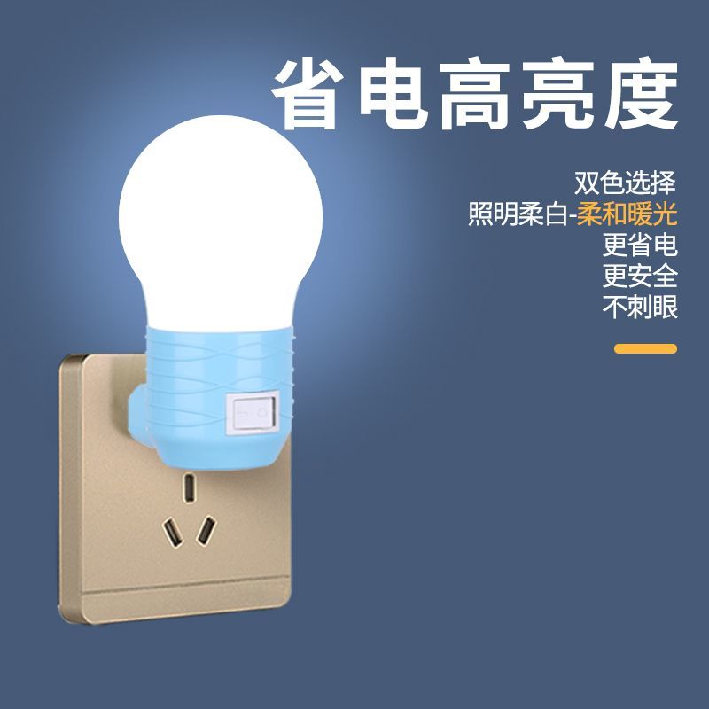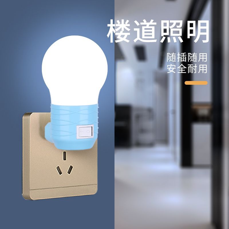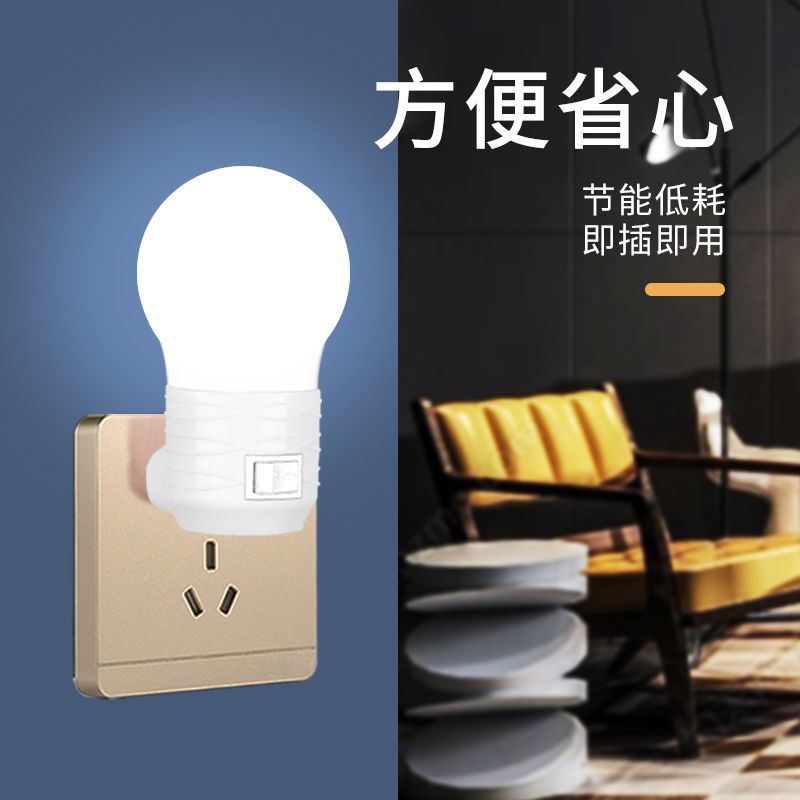 节能LED灯泡床头灯壁灯插座式插电卧室带开关超亮照明直插小夜灯