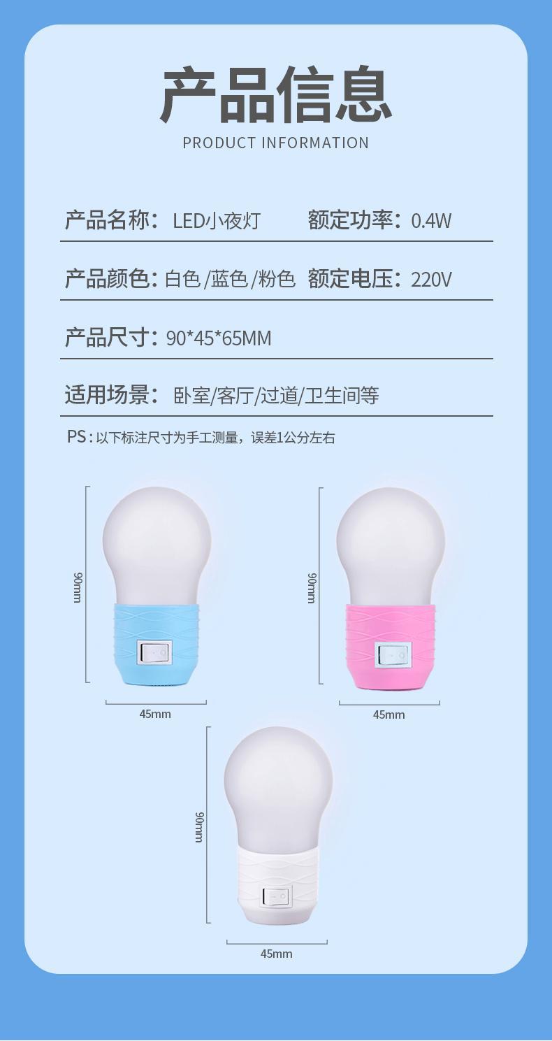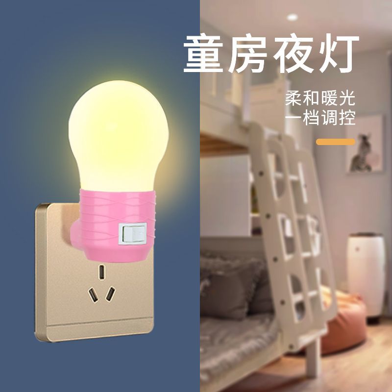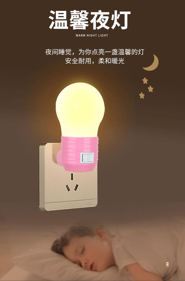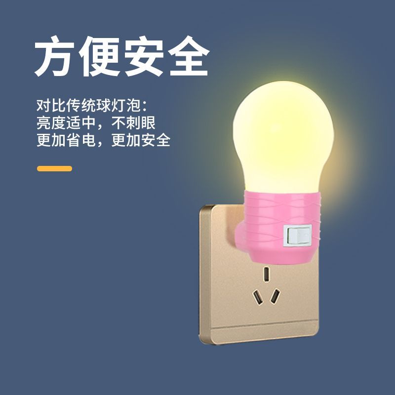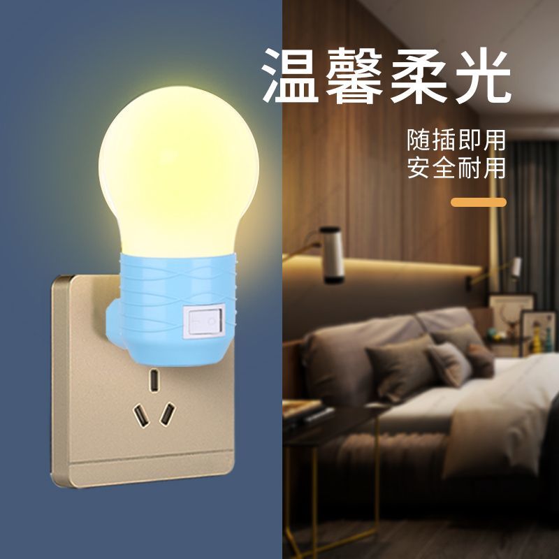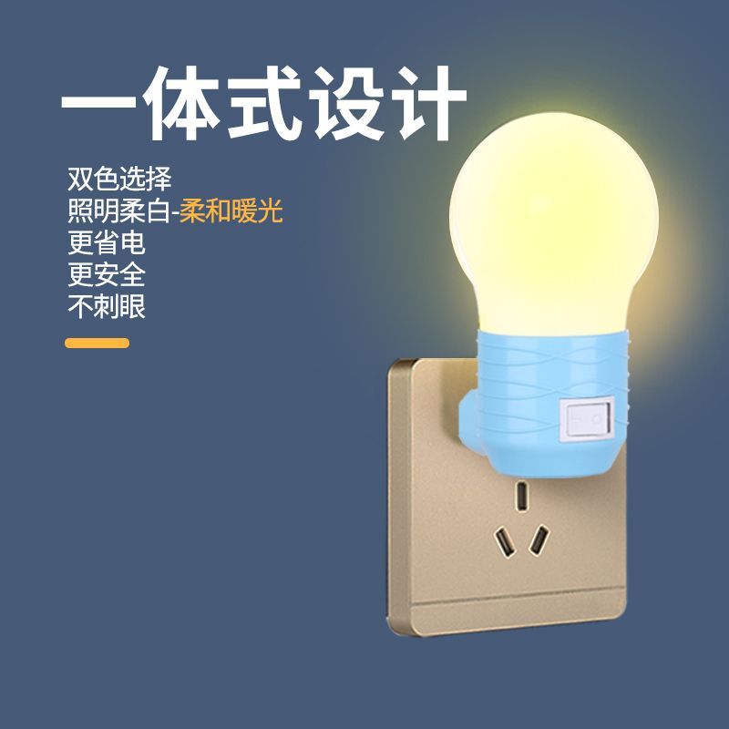 节能LED灯泡床头灯壁灯插座式插电卧室带开关超亮照明直插小夜灯