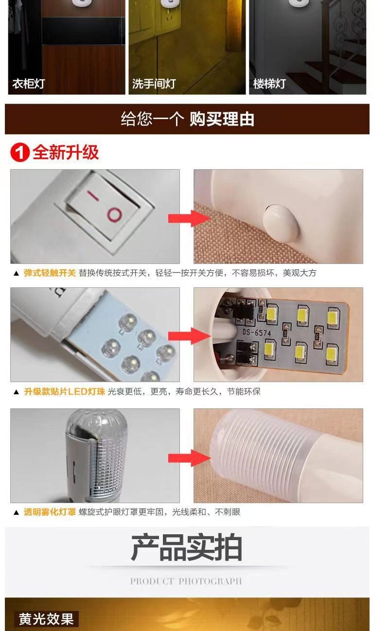 开关双色可调节能小夜灯护眼卧室床头喂奶睡眠灯过道走廊起夜灯