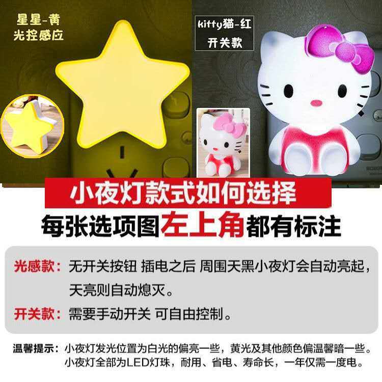 小夜灯光控LED插电开关灯插座节能灯感应灯婴儿喂奶灯卧室小灯泡