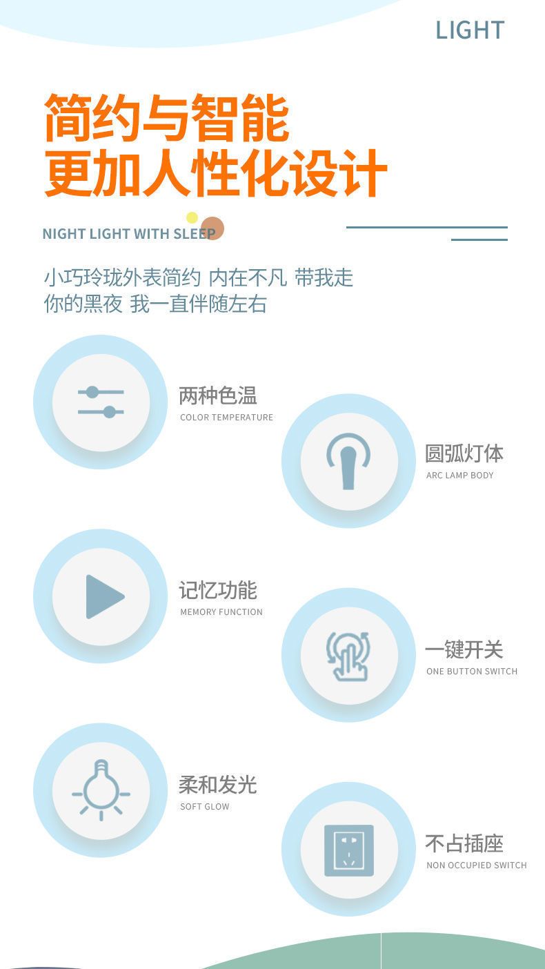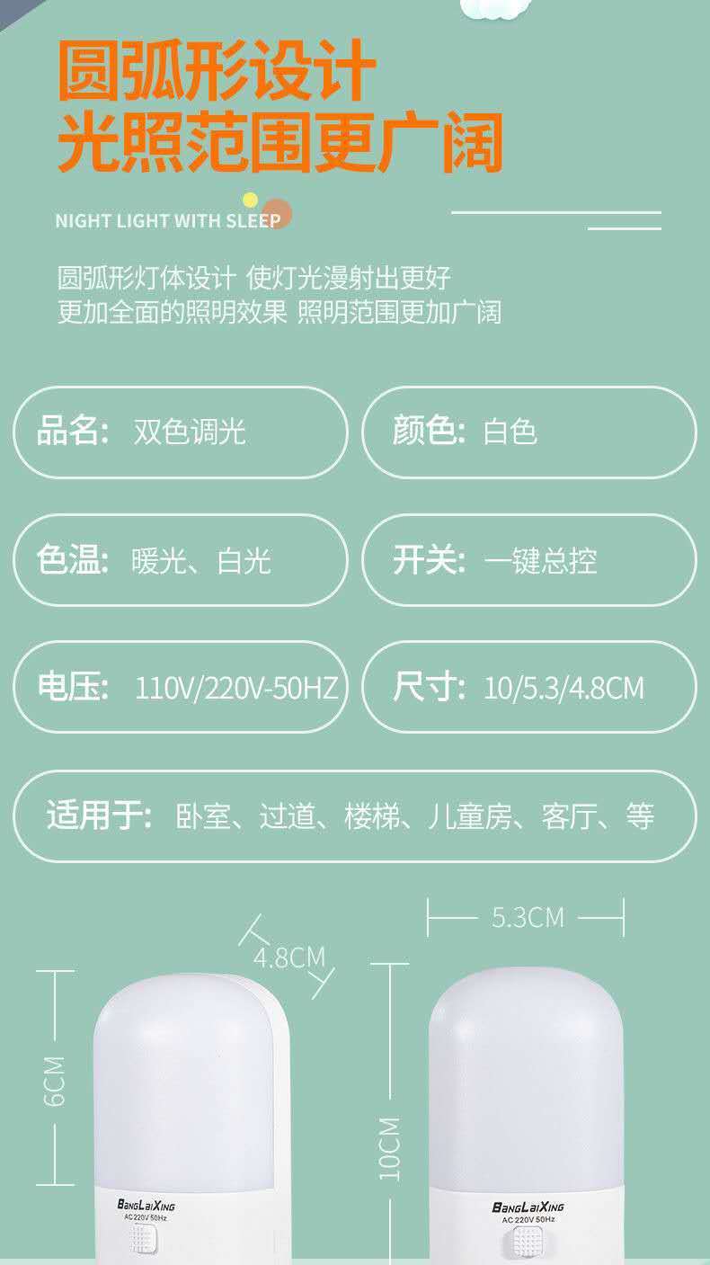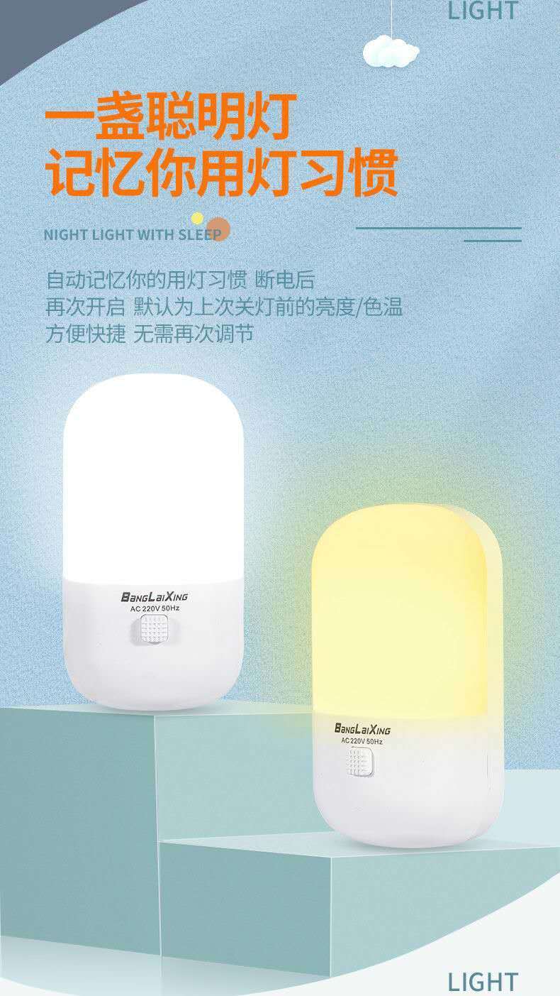 LED节能小夜灯带开关双色可调节变色客厅家用床头灯夜灯睡眠夜用