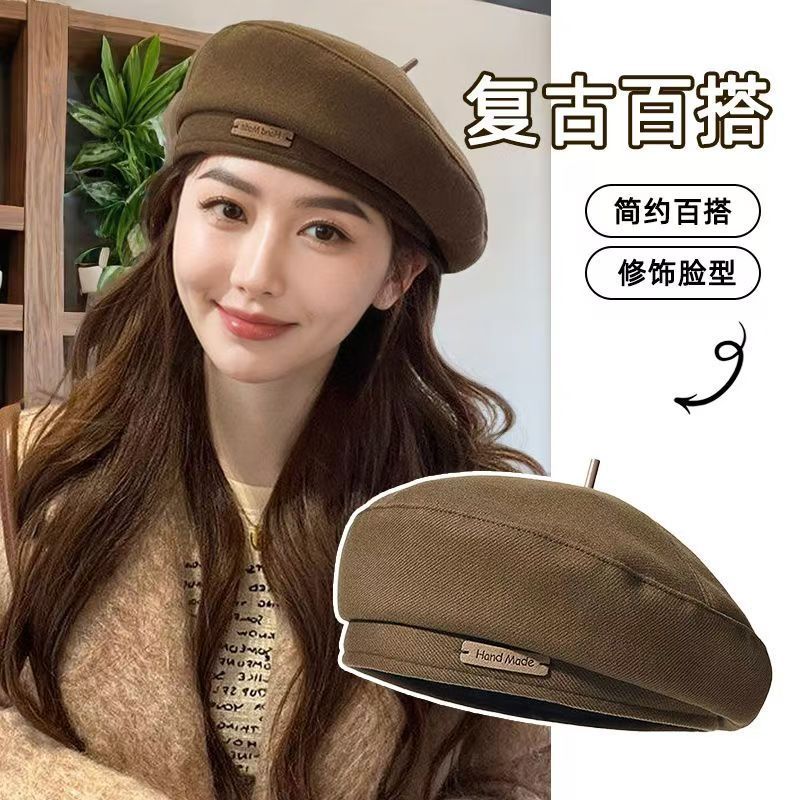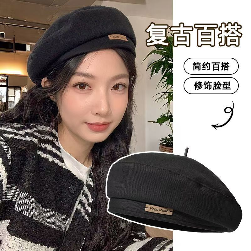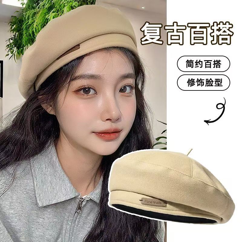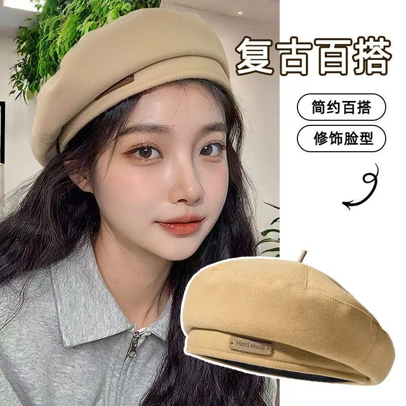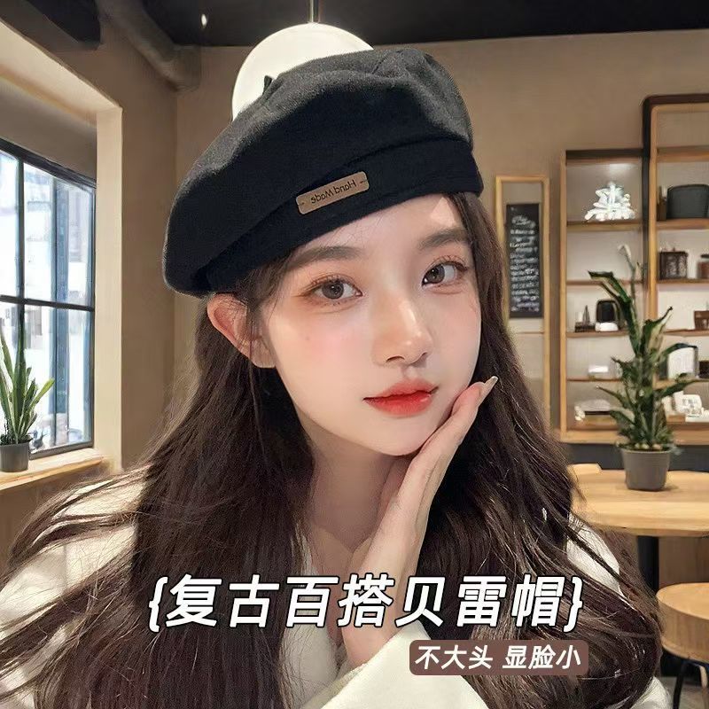 贝雷帽子女秋冬季新款时尚英伦风气质画家帽复古百搭显脸小蓓蕾帽