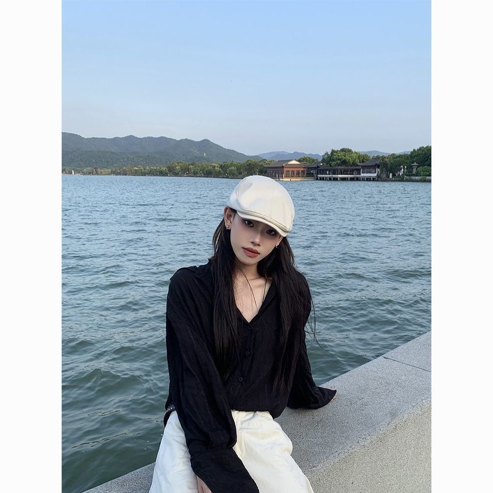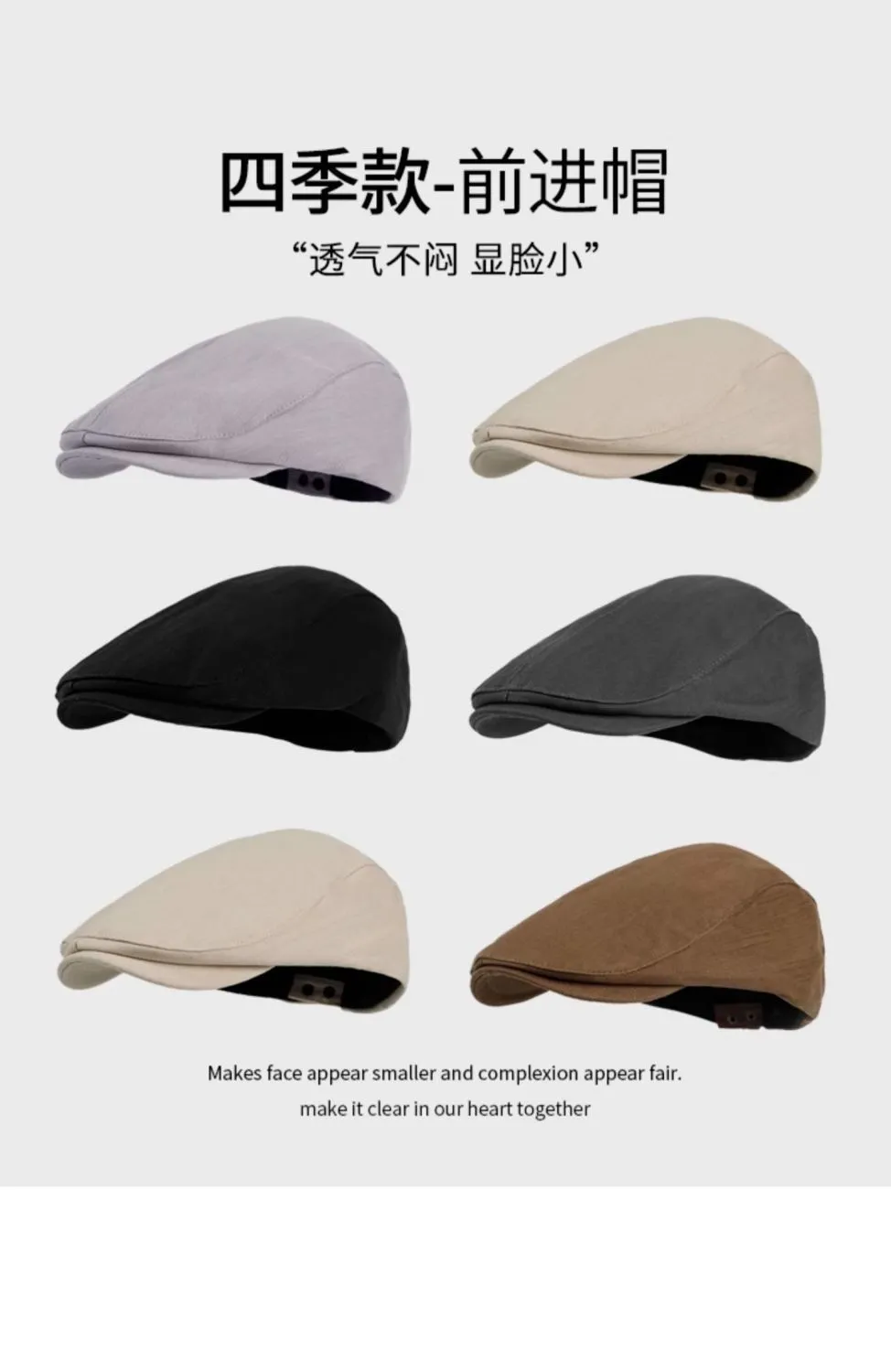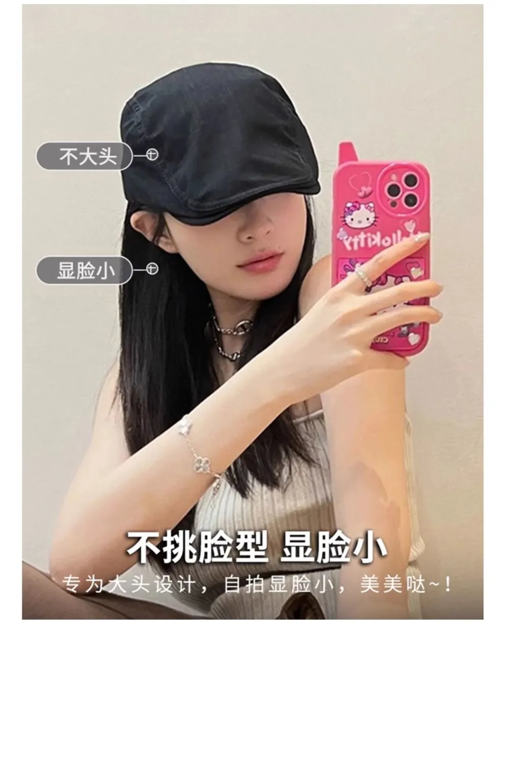 大头围复古法式贝雷帽春秋季新款前进帽黑色画家报童帽子女显脸小