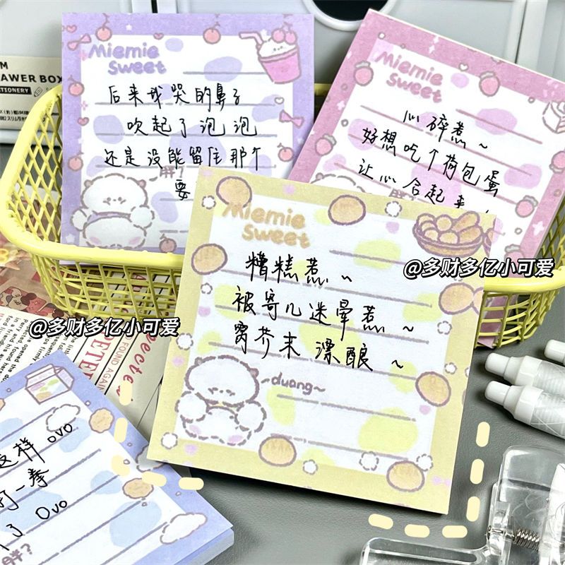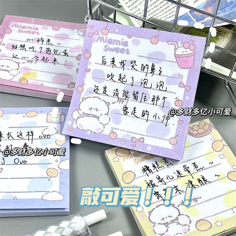 卡通呆萌小熊便利贴高颜值ins风可粘贴式学生n次贴备忘录便签本子