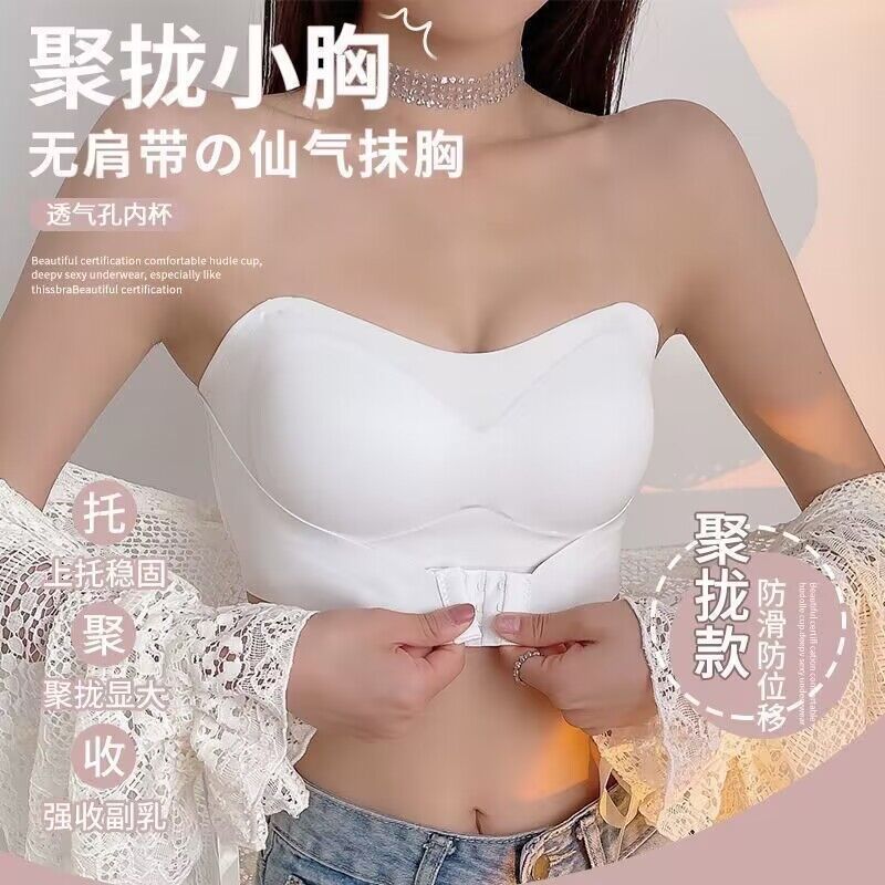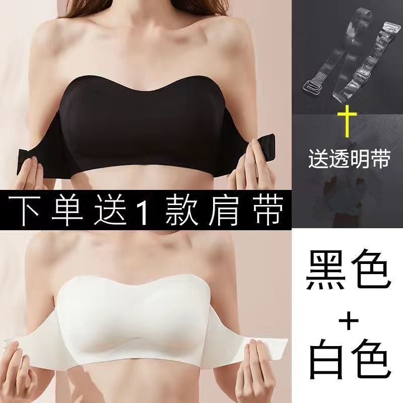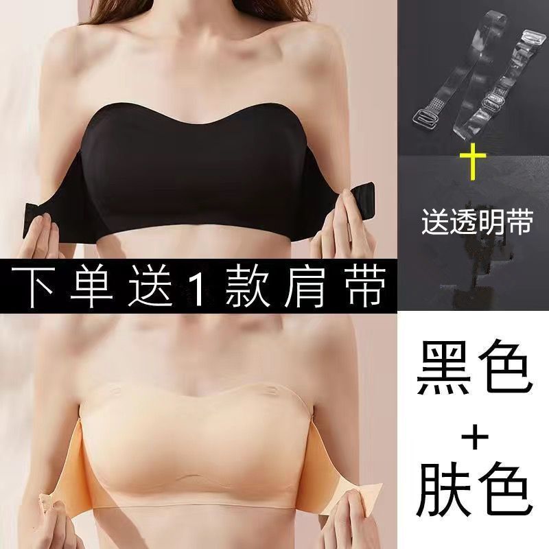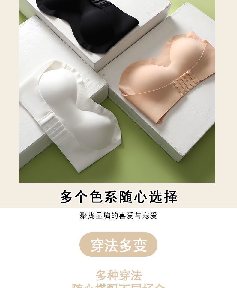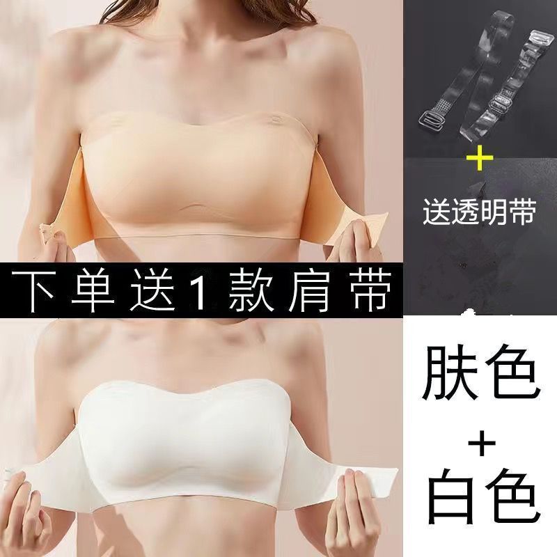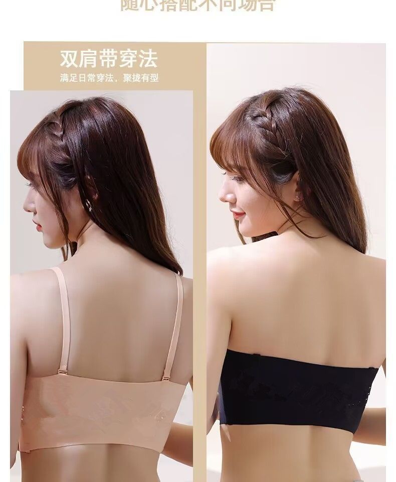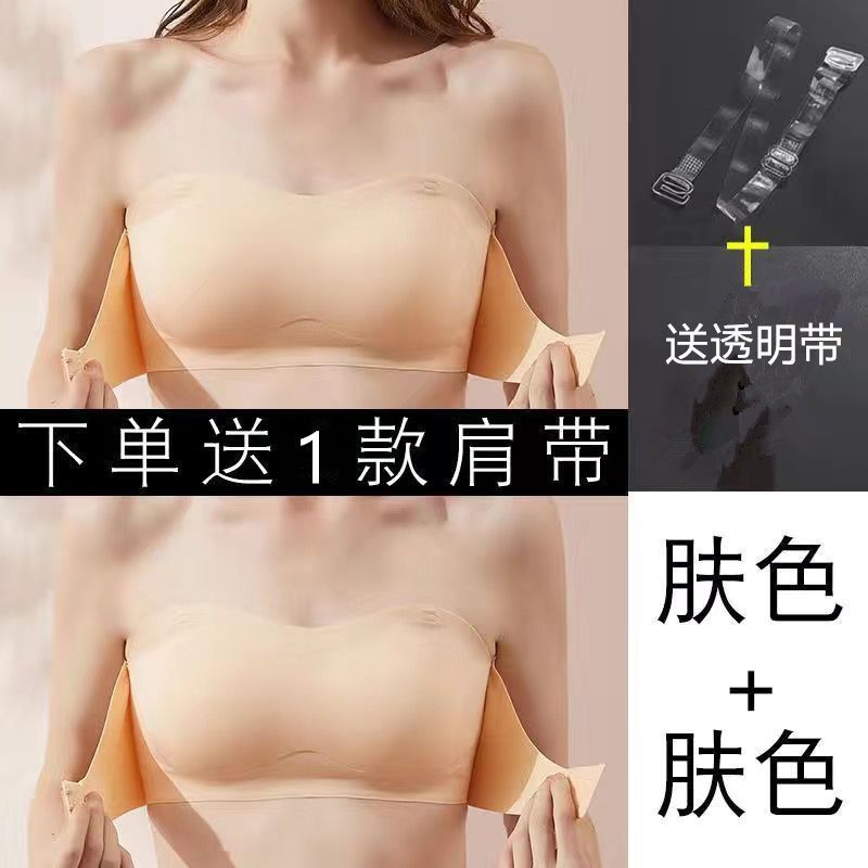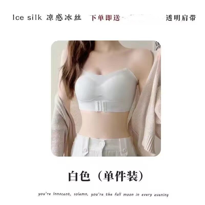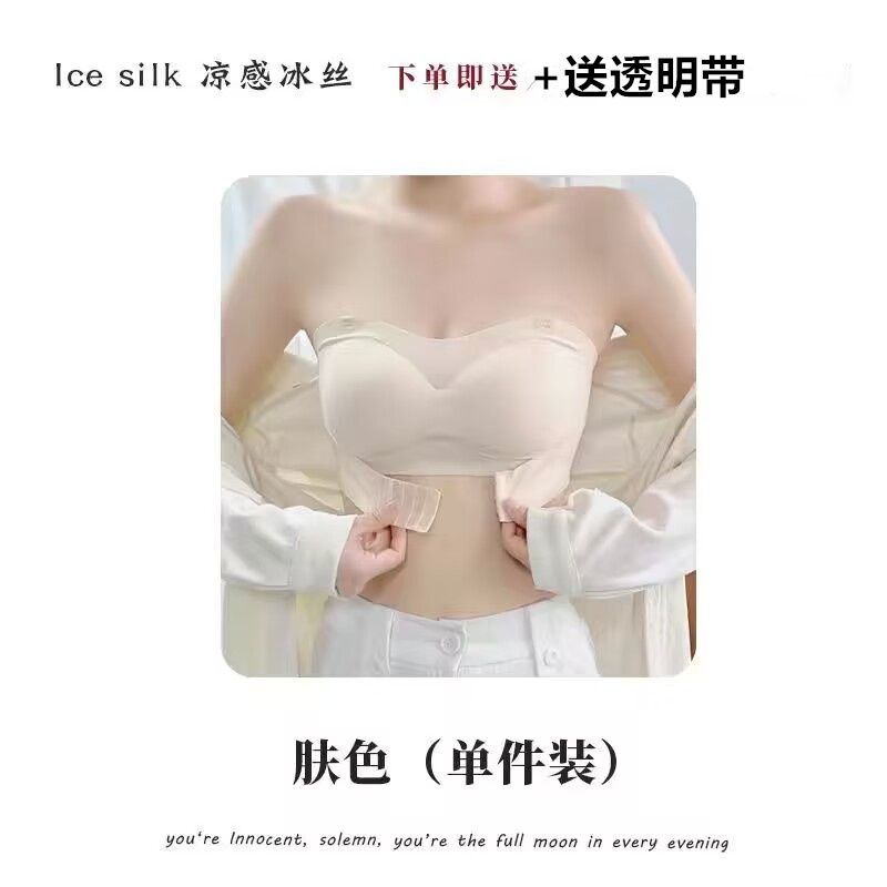抖音同款夏季冰丝无痕无肩带内衣女小胸聚拢防滑不掉隐形文胸抹胸