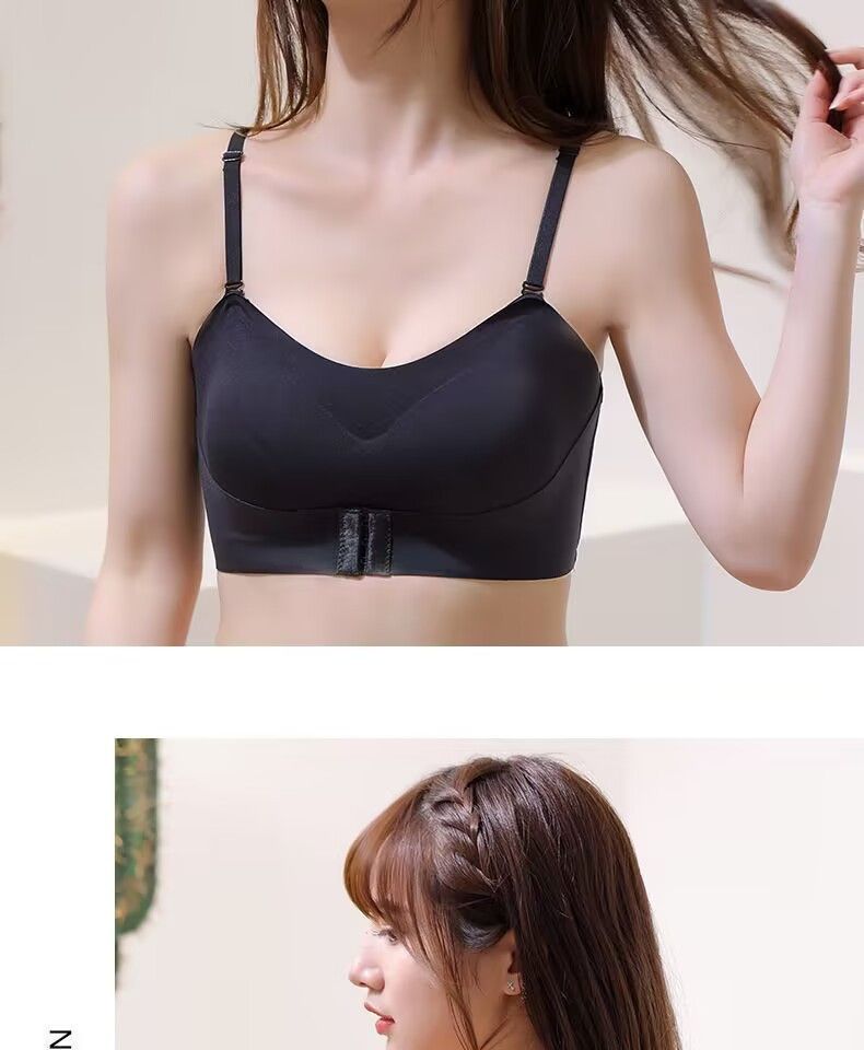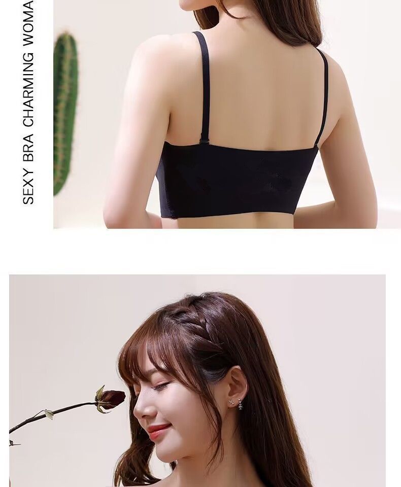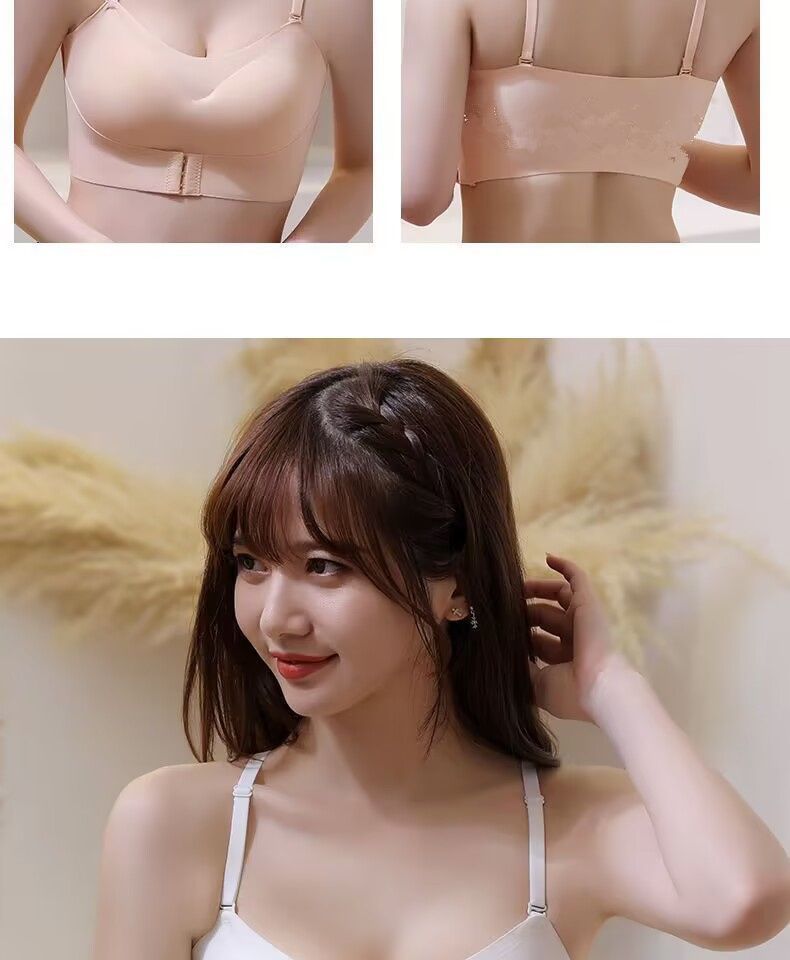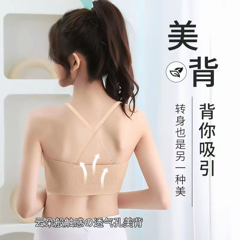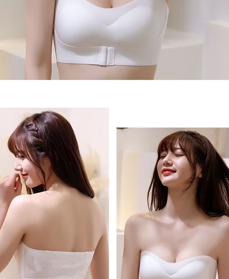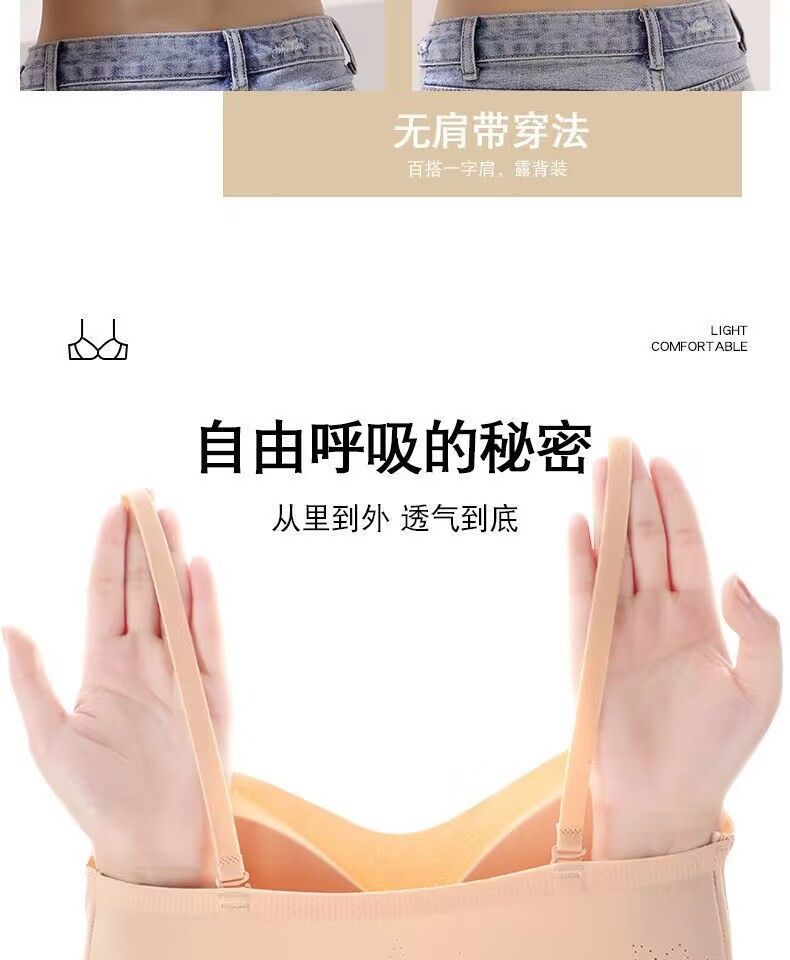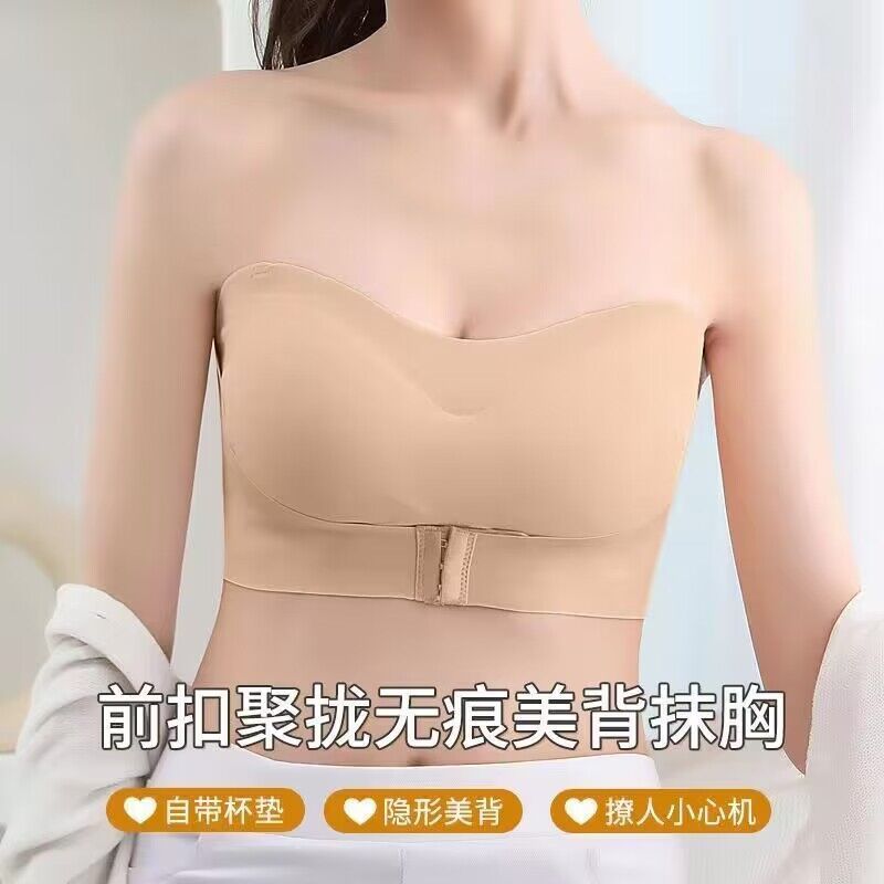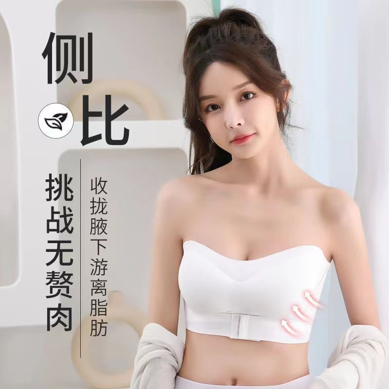 抖音同款夏季冰丝无痕无肩带内衣女小胸聚拢防滑不掉隐形文胸抹胸