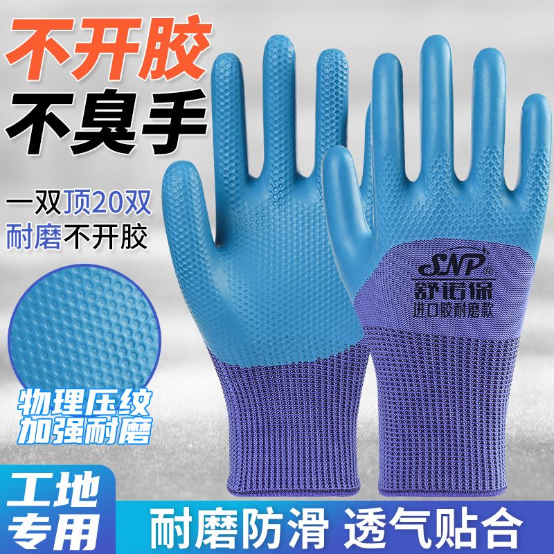 进口胶压纹耐磨劳保手套防滑防水防油橡胶防护男建筑工地手套批发