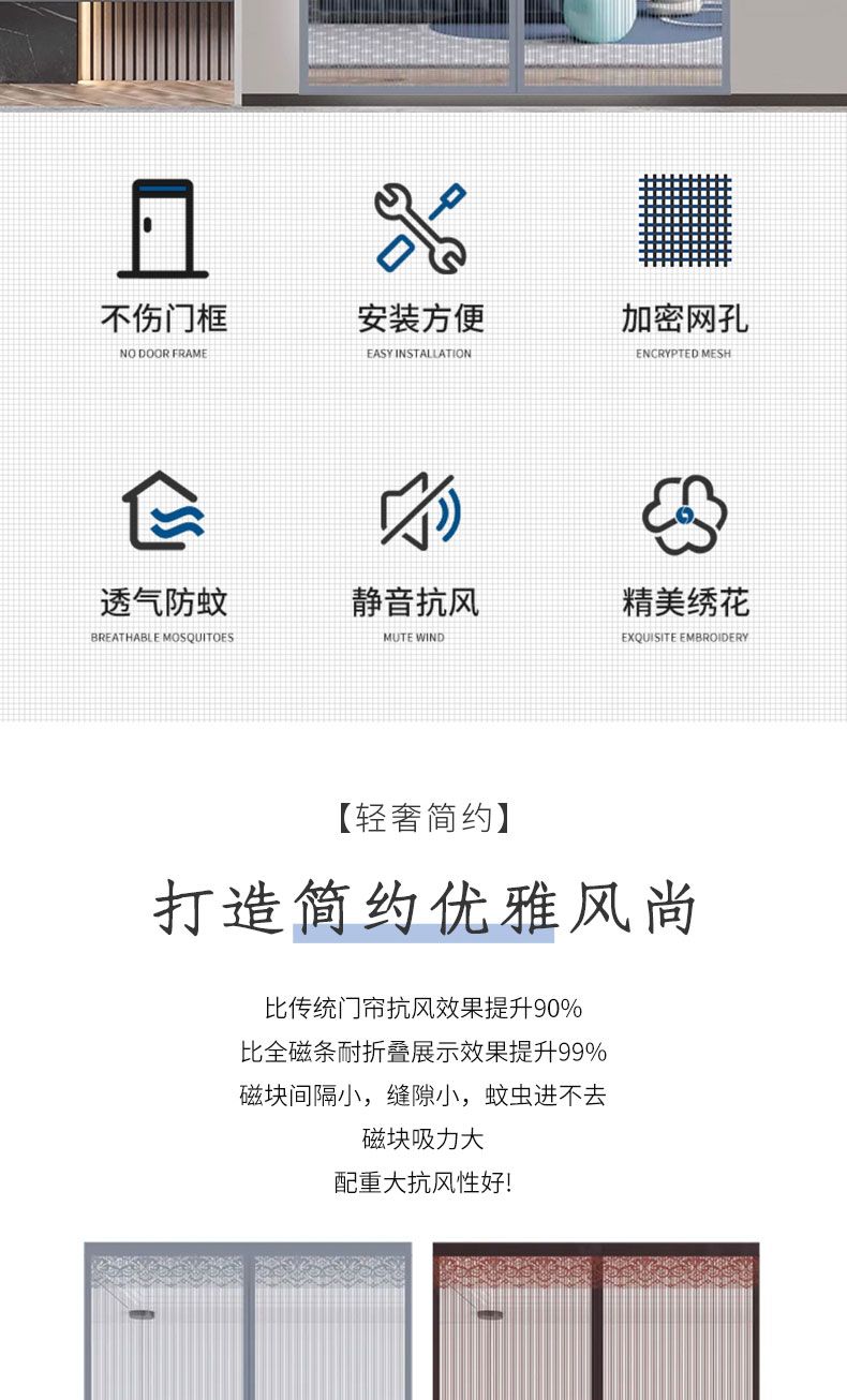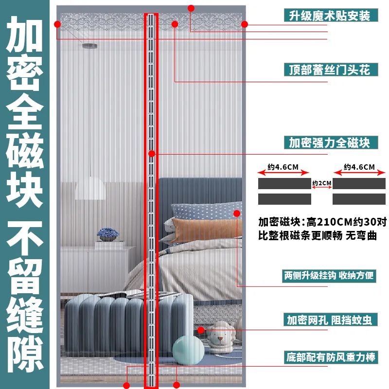 新款高档魔术贴免打孔自粘防蚊防蝇加密金刚网门帘双开门卧室门窗