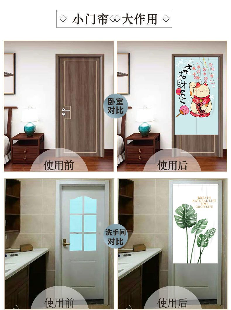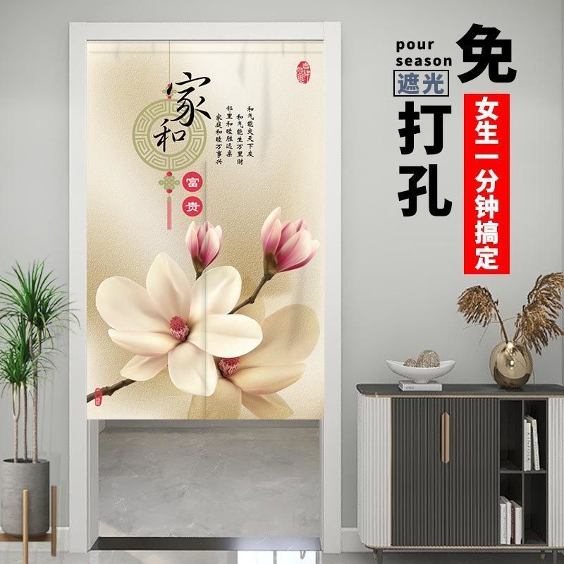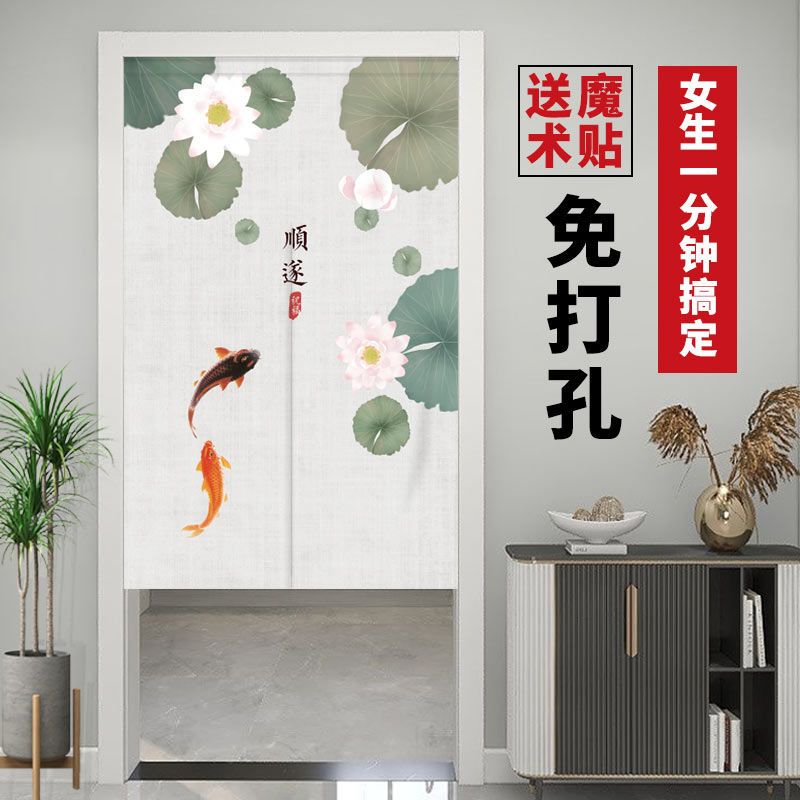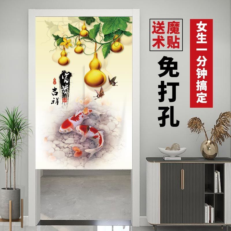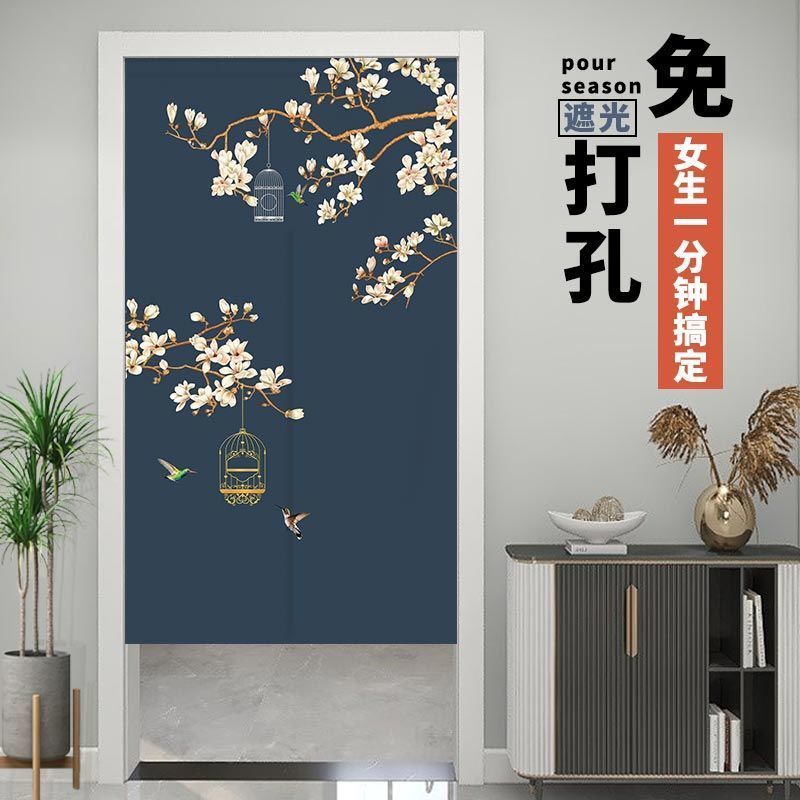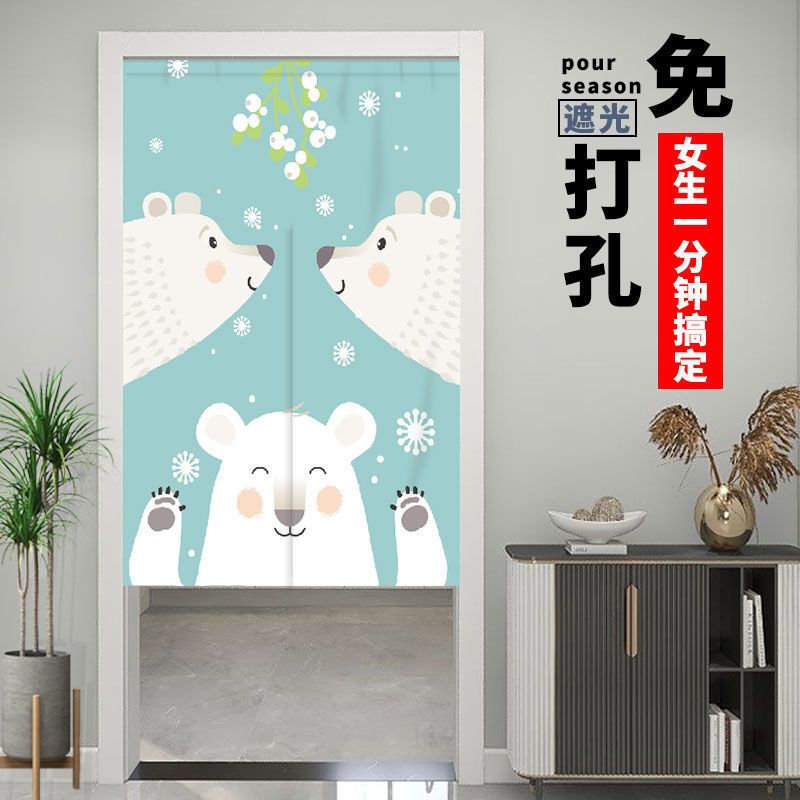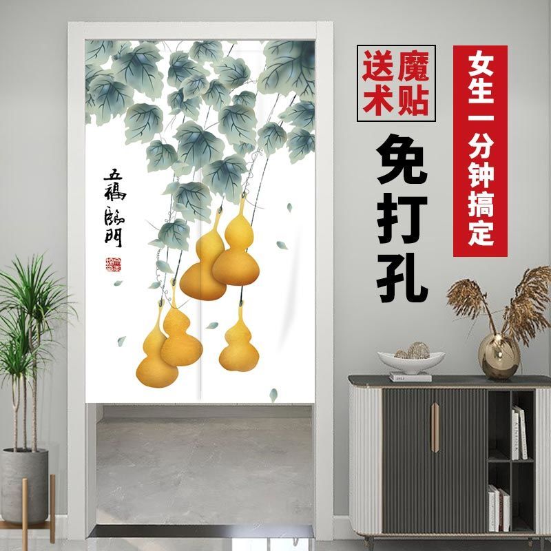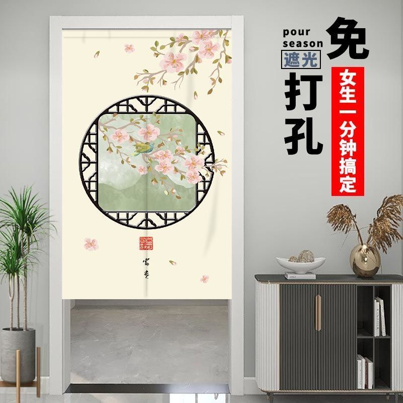门帘隔断布帘免打孔卧室卫生间厨房家用客厅半帘外门遮挡挂帘遮光