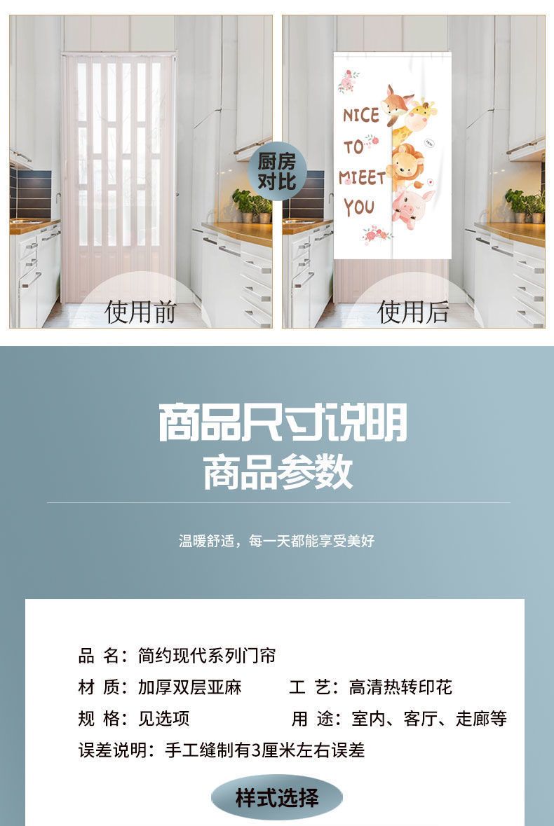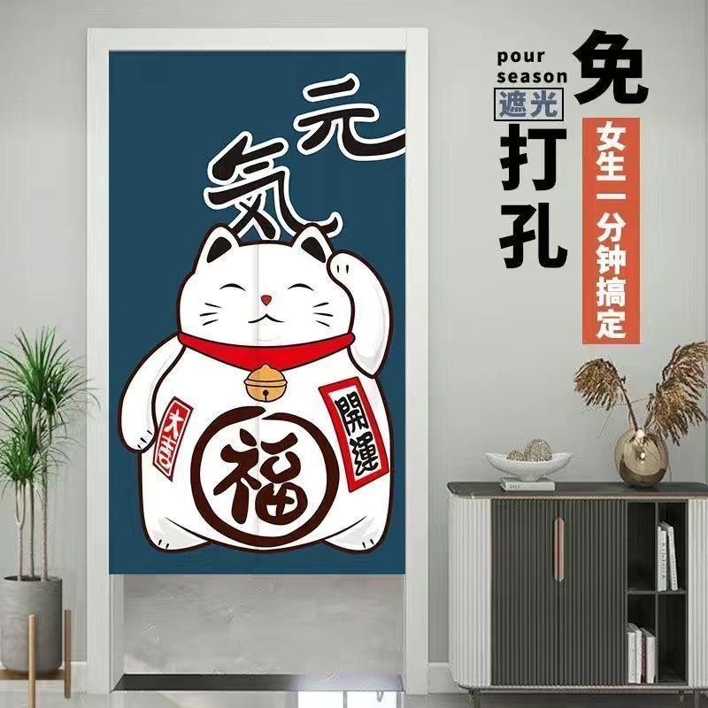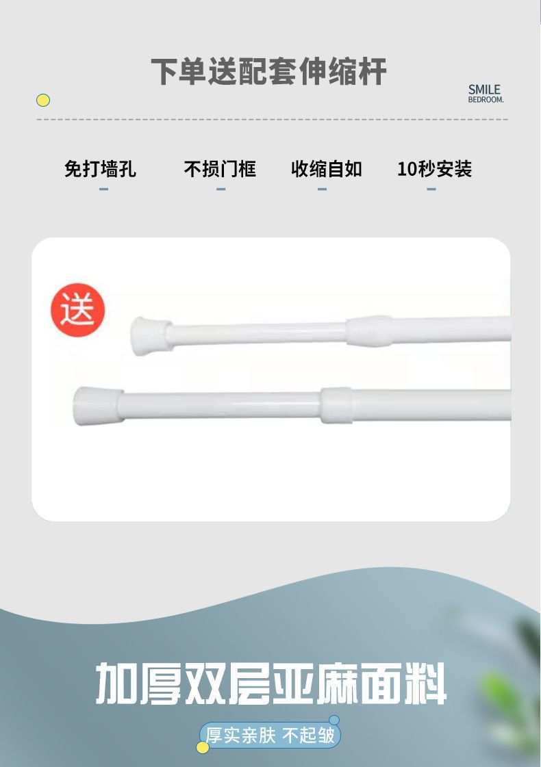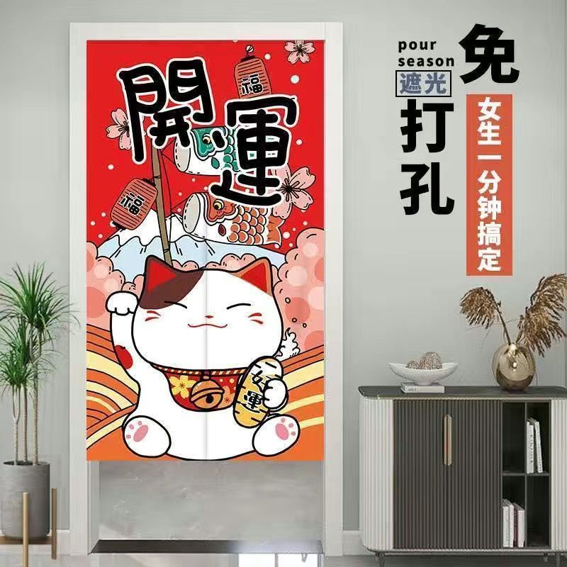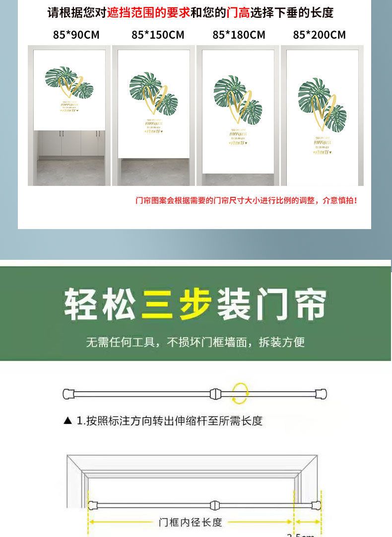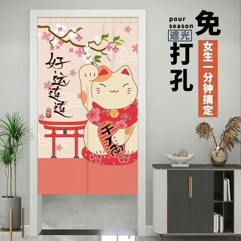 门帘隔断布帘免打孔卧室卫生间厨房家用客厅半帘外门遮挡挂帘遮光