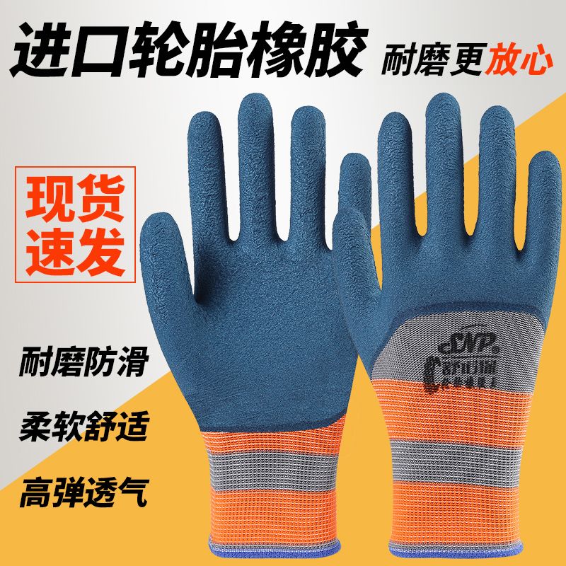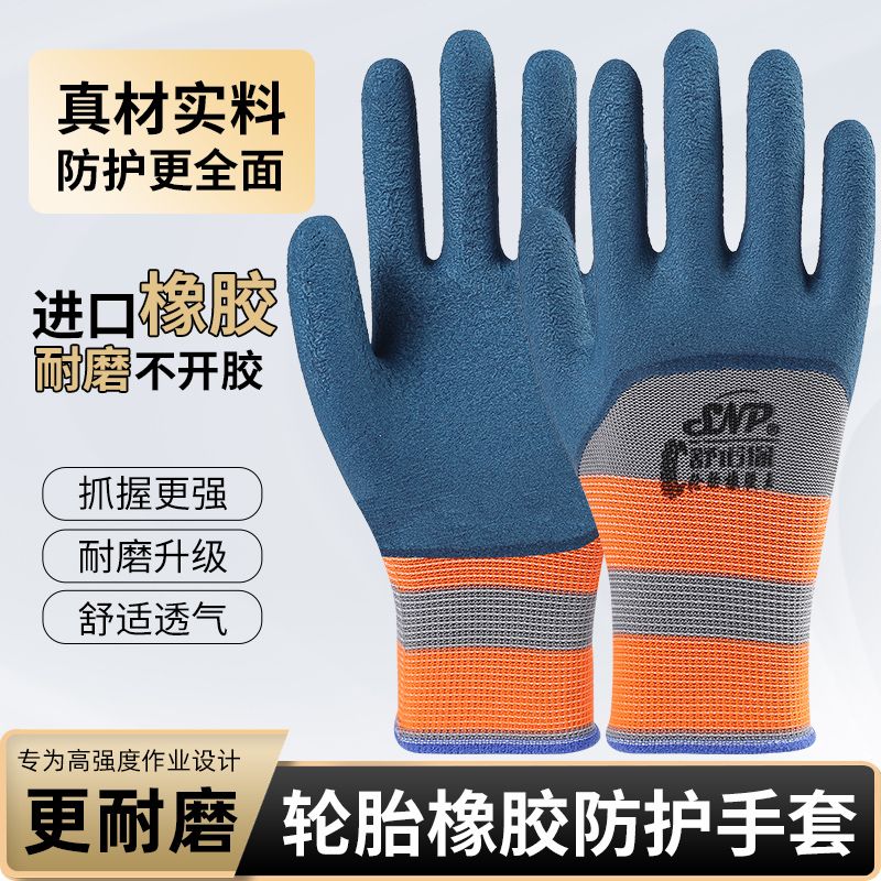 橡胶发泡劳保手套乳胶防滑耐磨耐用建筑钢筋工地干活工作防护批发