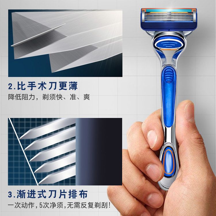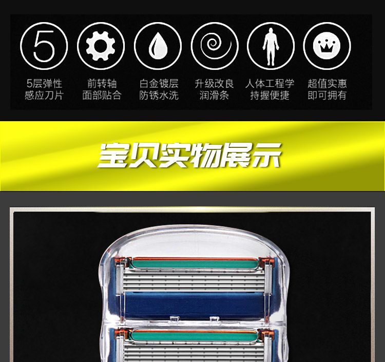 真德国进口刀片 通用吉利5层剃须刀片手动刮胡刀头五层刀片刀架