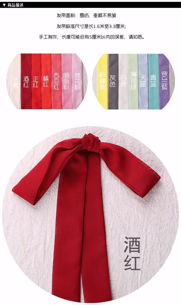 汉服发带古风发饰纯色飘带绑发丝带超仙束发头绳日常蝴蝶结头饰