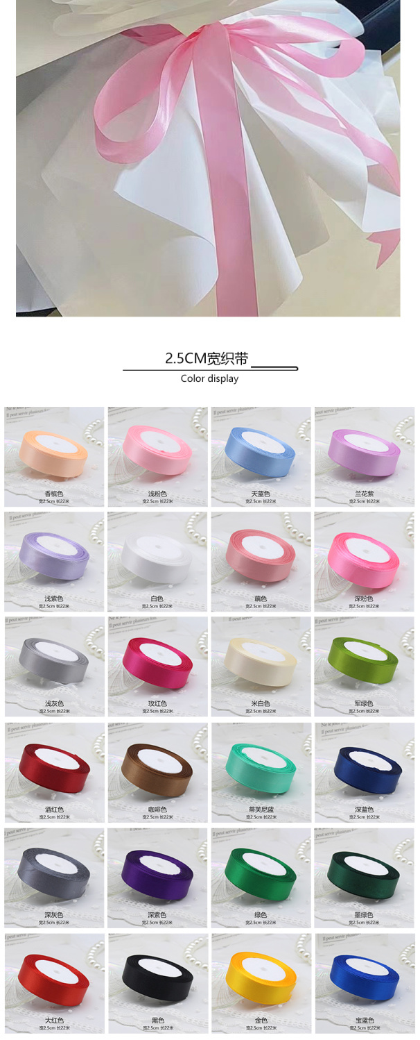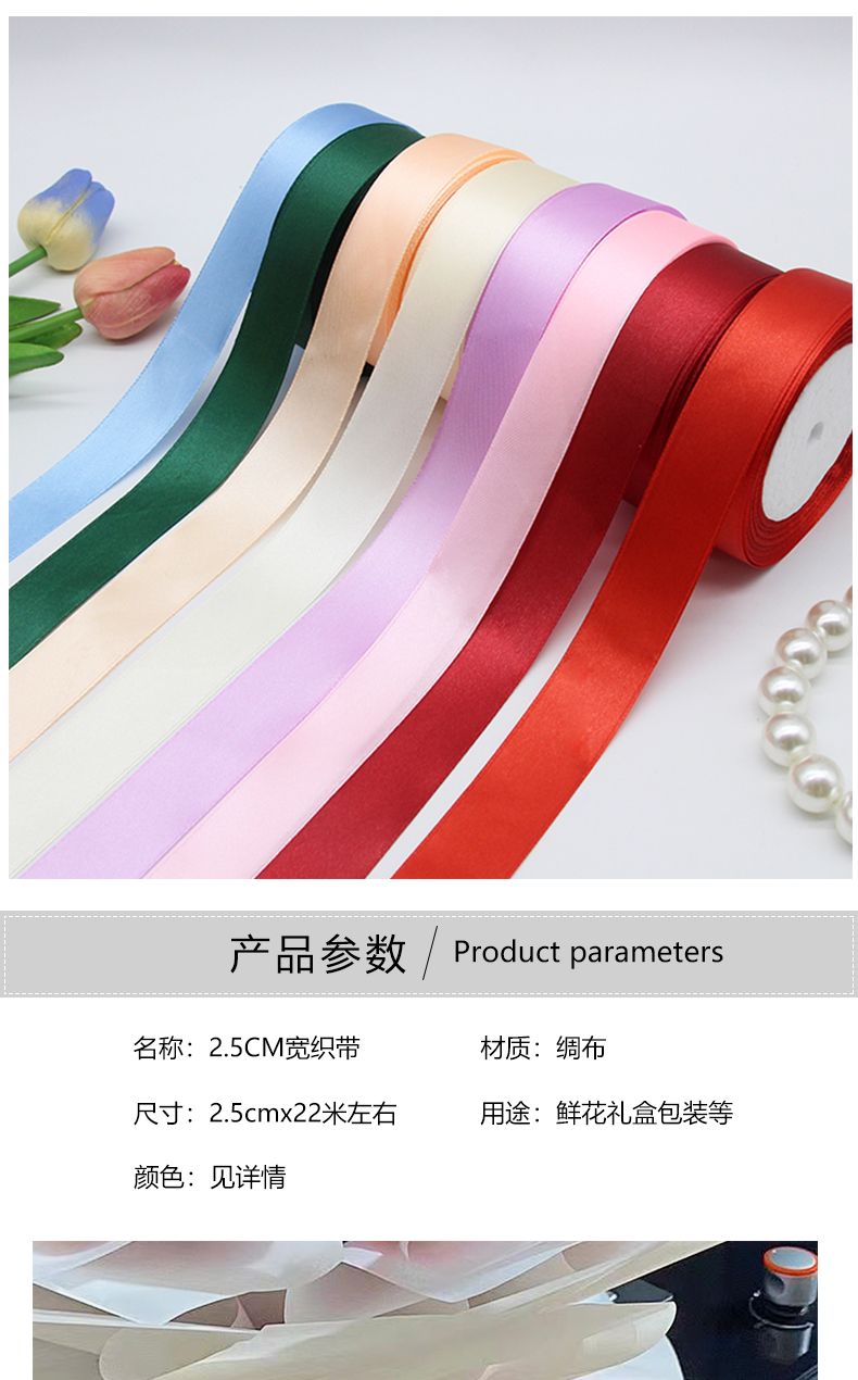 2.5CM宽织带缎带彩带丝带 婚庆椅背蝴蝶结丝带包装礼物圣诞绸带