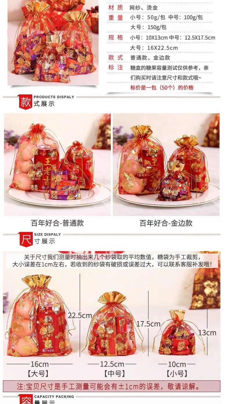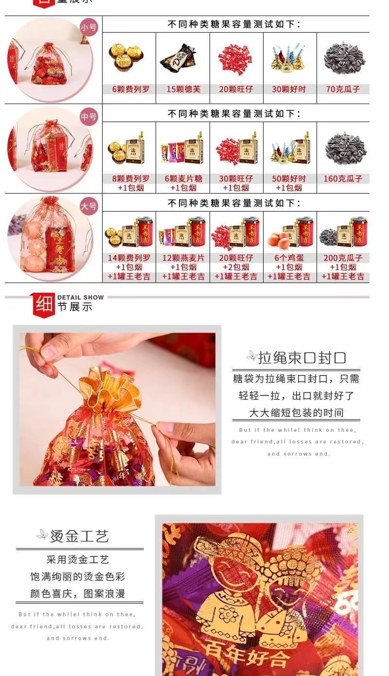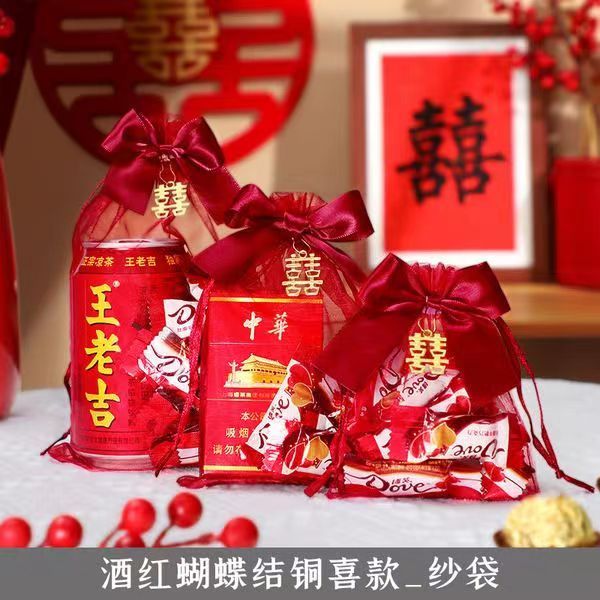 结婚喜糖袋婚庆用品过寿宴喜袋中式糖盒婚礼喜糖果袋纱袋批发乔迁
