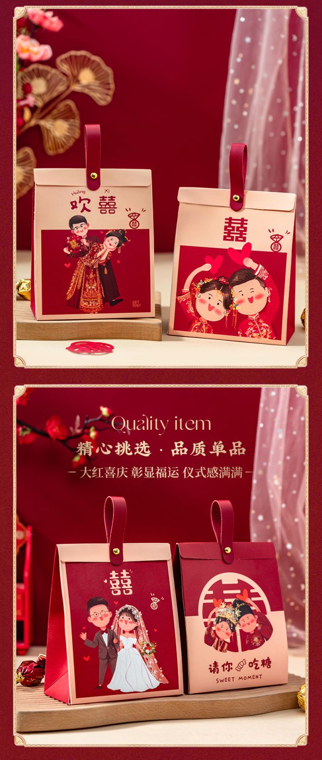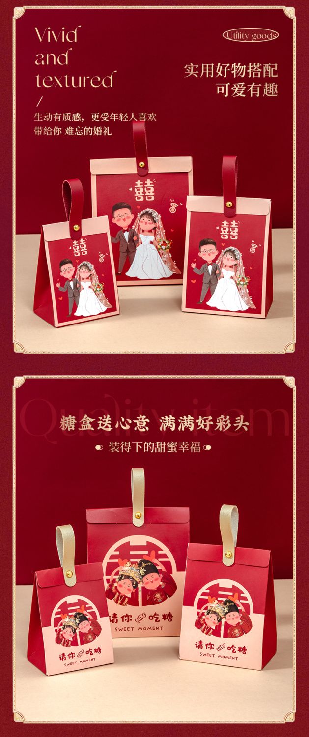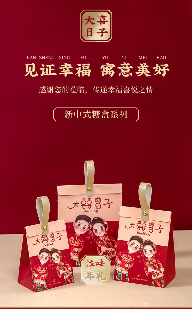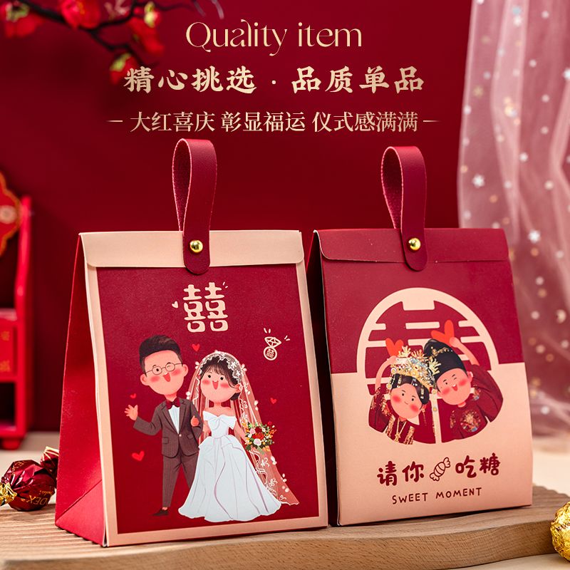 结婚喜糖盒新款高级手提糖果礼盒袋子婚礼订婚喜糖包装伴手礼空盒