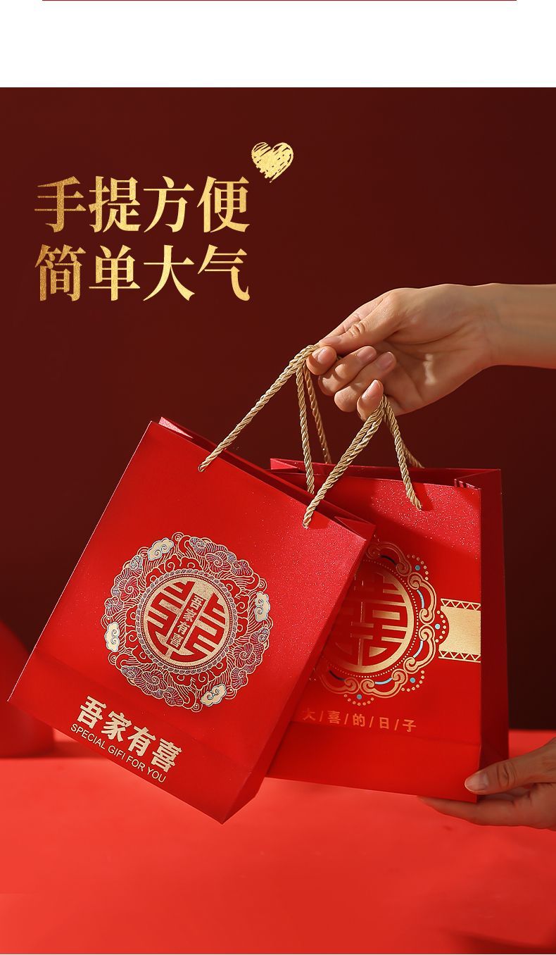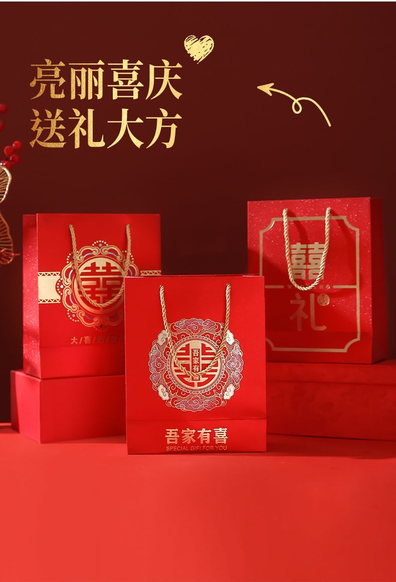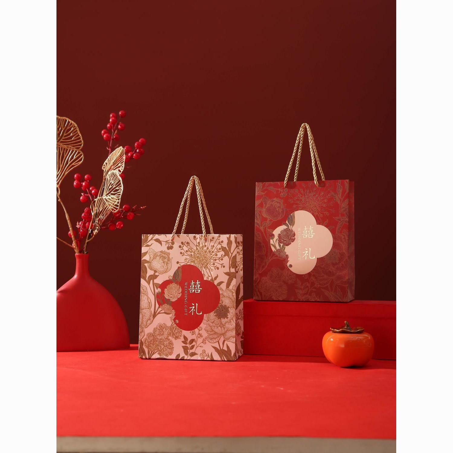 新款婚礼袋子手提袋结婚婚庆礼袋婚礼喜糖高级礼品袋批发结婚专用
