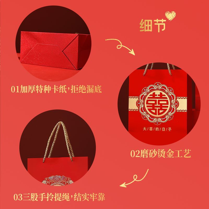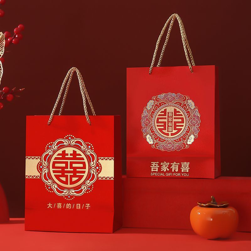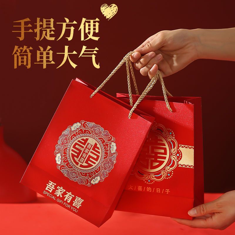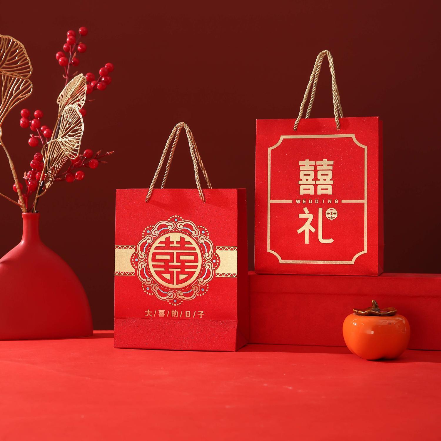 新款婚礼袋子手提袋结婚婚庆礼袋婚礼喜糖高级礼品袋批发结婚专用