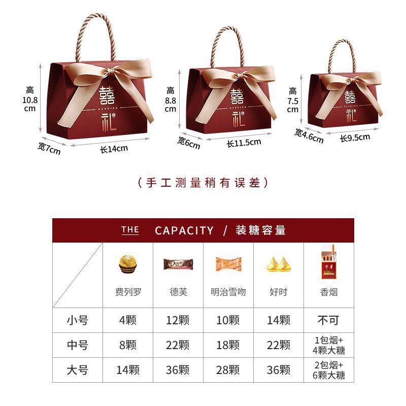 糖盒婚礼订婚创意新款喜糖盒子结婚专用手提式可放烟喜糖袋礼盒装