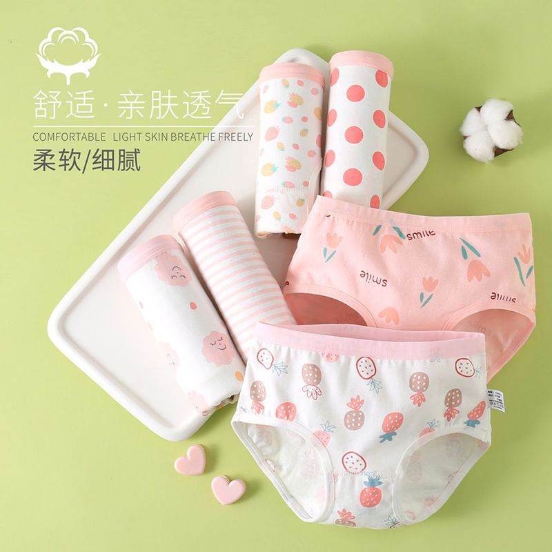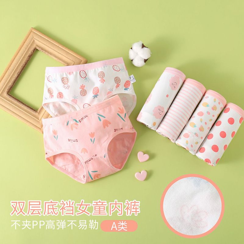 儿童内裤纯棉女童三角短裤宝宝A类全棉小女孩中大童8岁100%不夹PP