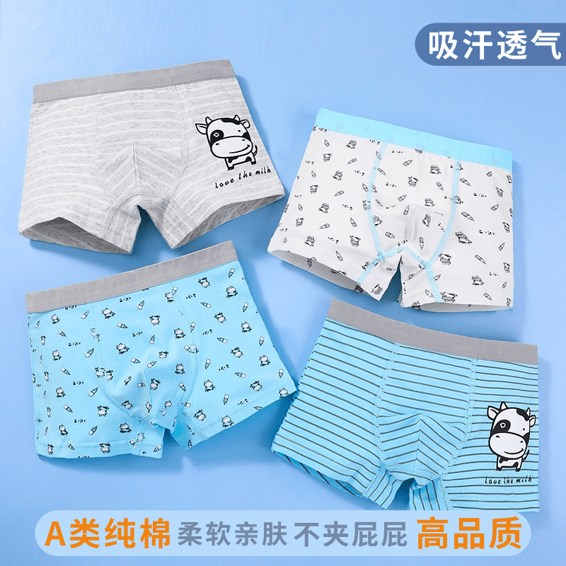 儿童内裤男孩儿平角a类纯棉小大童男宝宝内裤8四角12岁男童短裤头