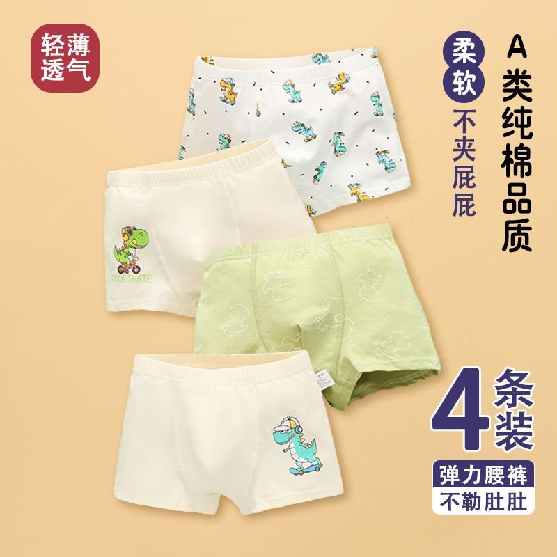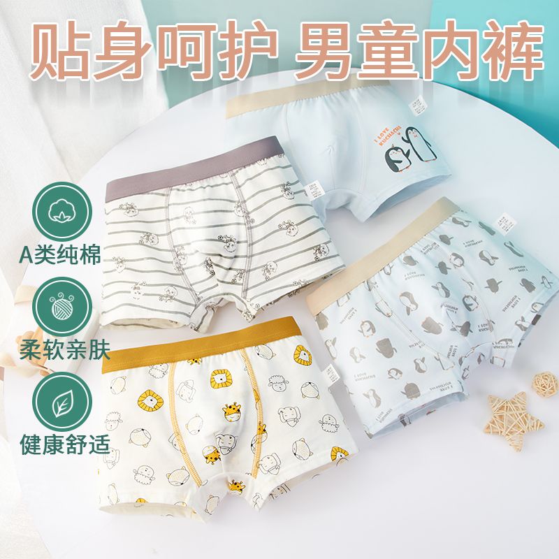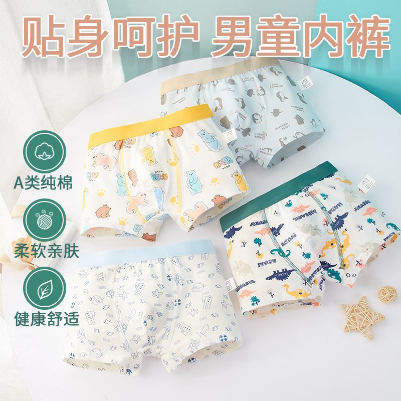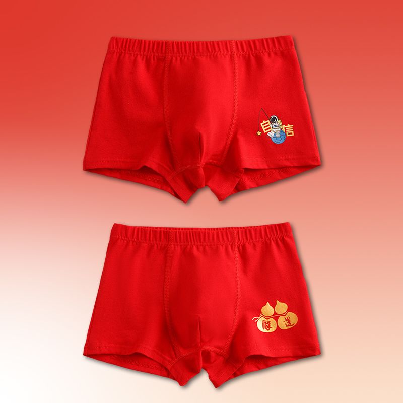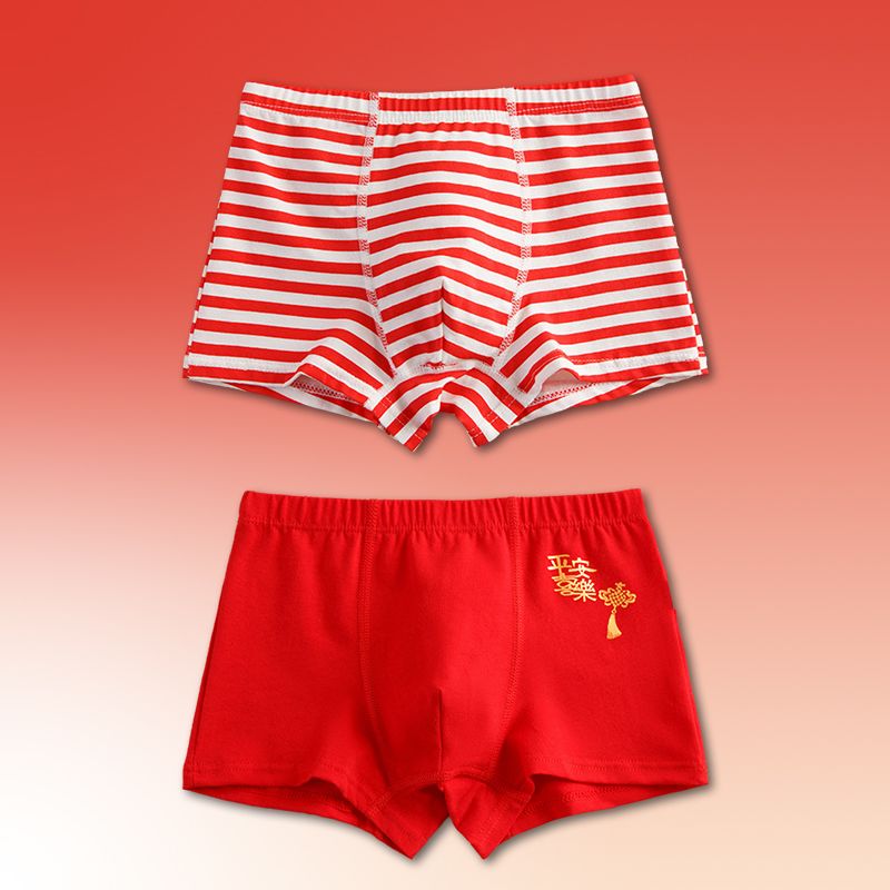 儿童内裤男平角裤男童红色纯棉四角裤宝宝男孩小童中大童a类内裤