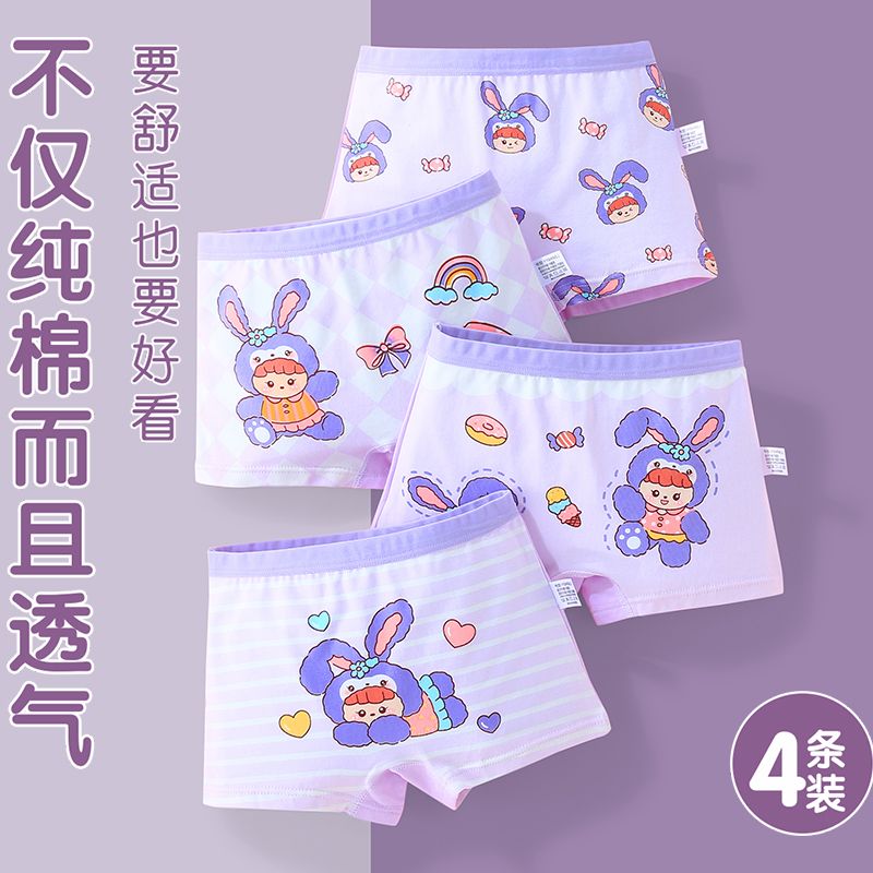 女童儿童内裤纯棉平角短裤四角中大童宝宝小女孩可爱卡通不夹屁屁
